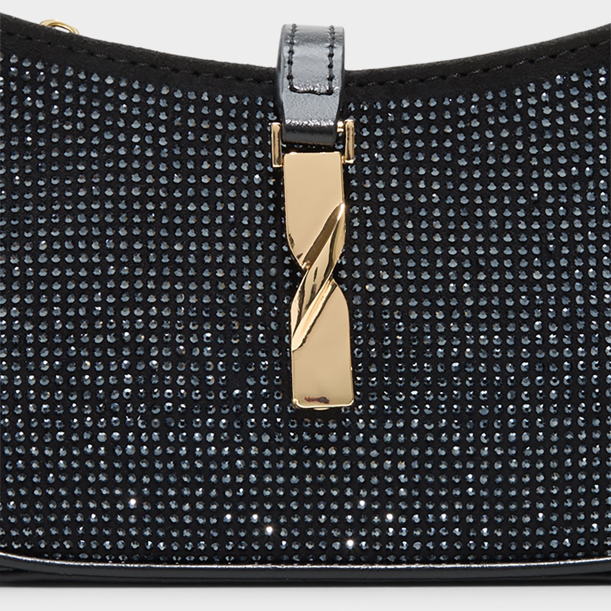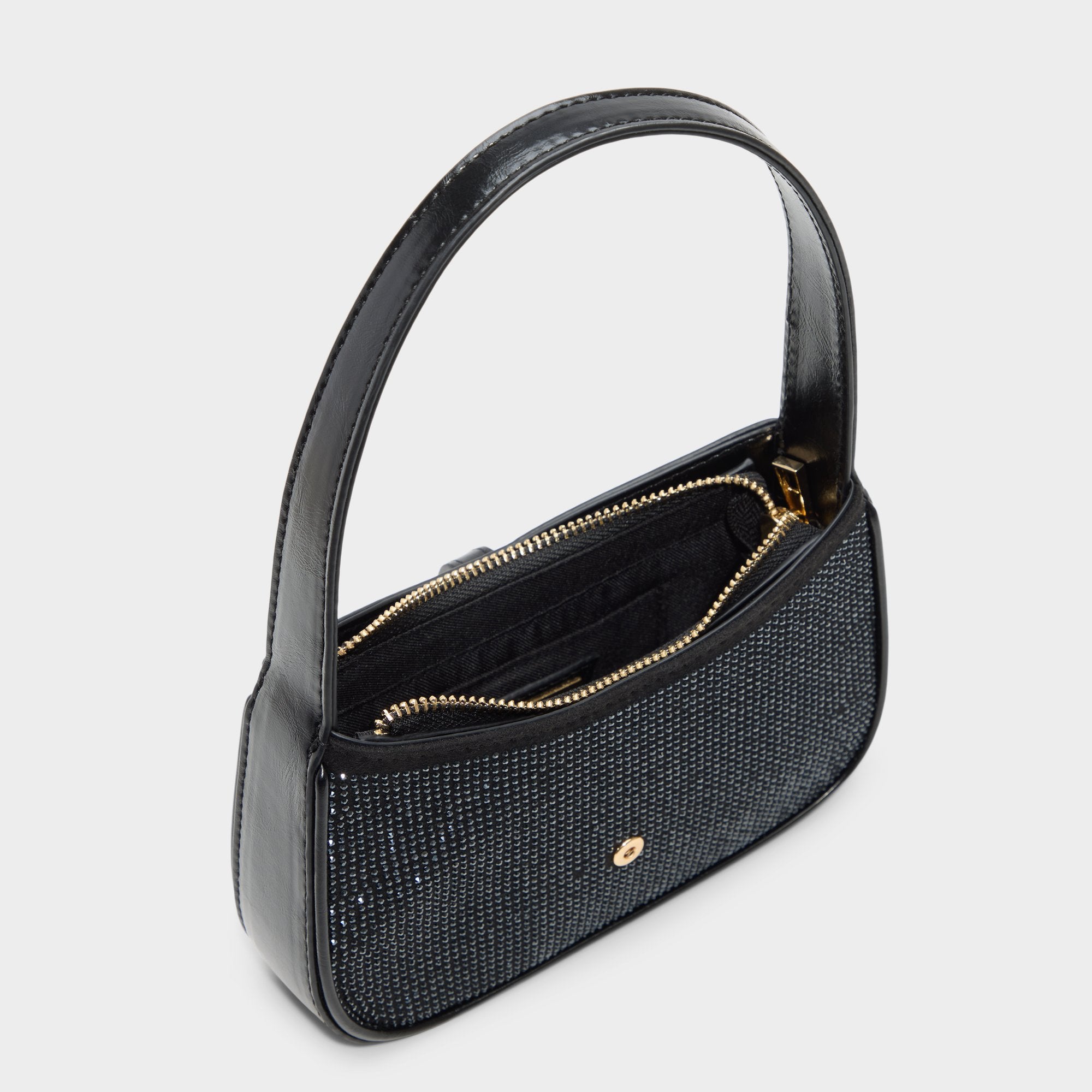 Midnight glass beads catch city lights on a petite shoulder bag, giving off disco-after-dark energy and a sleek zip-top closure that keeps essentials secure. Pair it with satin slips for rooftop celebrations, or tuck it under a blazer with denim for spontaneous bar crawls that last all night.