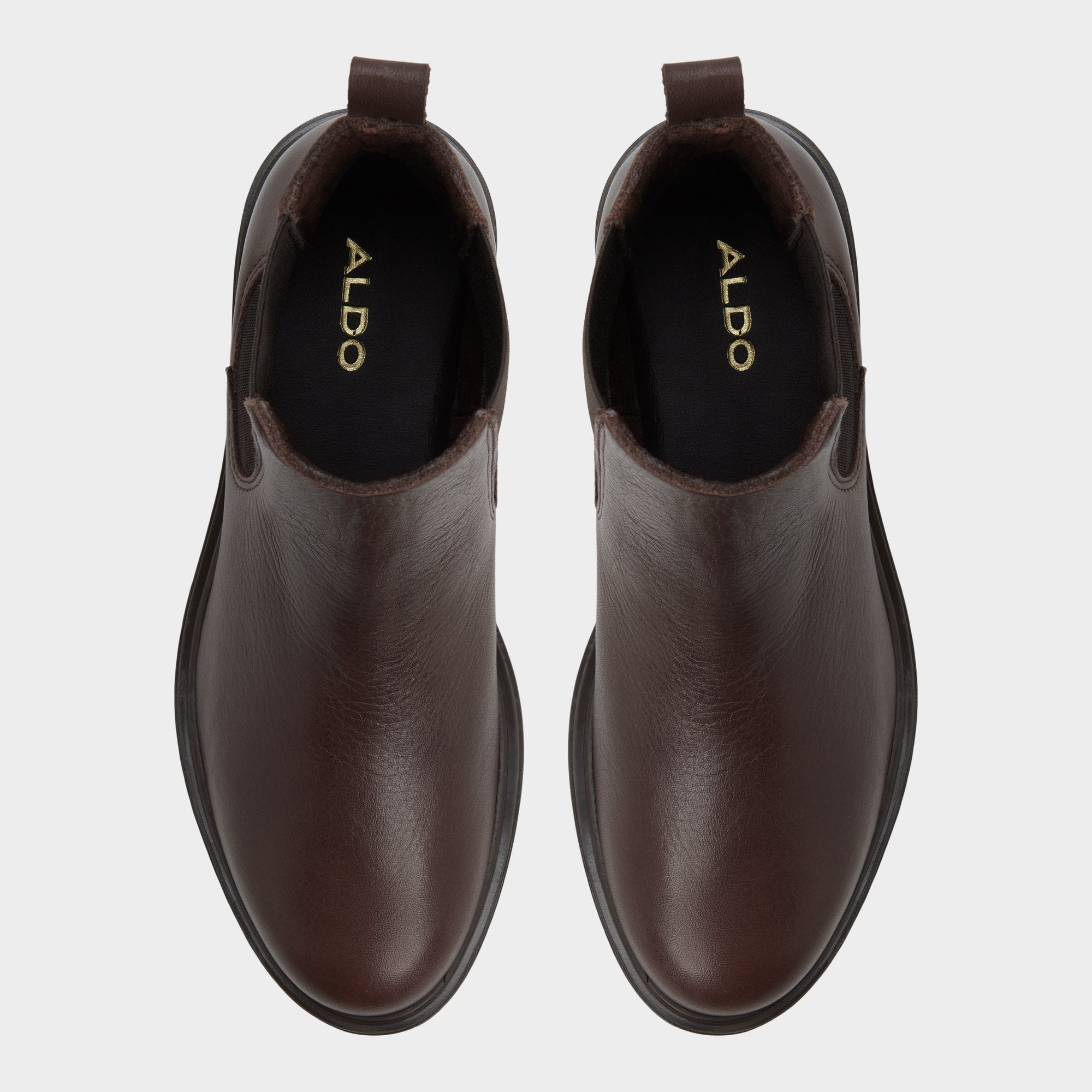 Rich chocolate leather grounds this streamlined Chelsea boot, with treaded lug soles delivering city-ready grip and a subtle lift, while elastic side panels make slipping in effortless before the morning coffee. Pair with cropped trousers for presentation days, or swap in a sweater dress when leaf-crunch walks segue into fireside cocktails.
