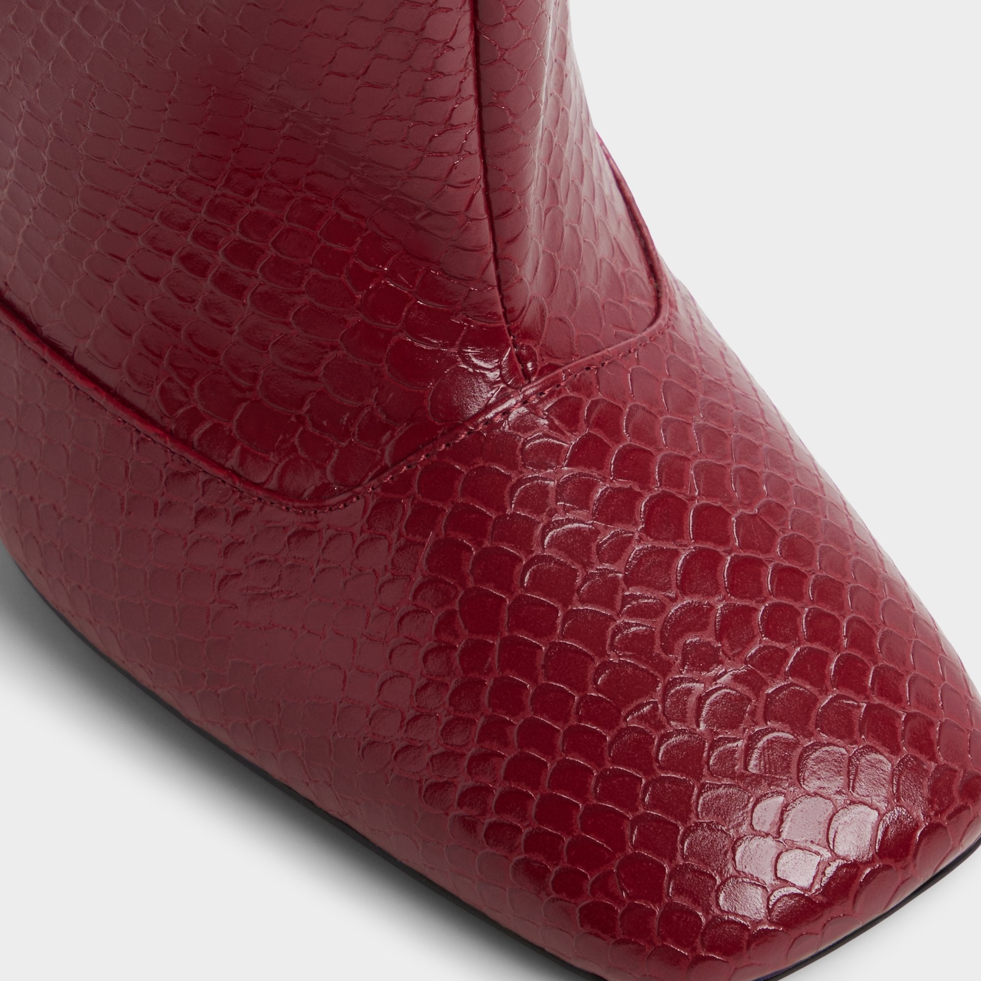 High-gloss crimson snake-embossed leather sweeps knee-high in one fluid motion, with a razor-sharp stiletto adding height and turning routine commutes into standout entrances while hidden padding keeps it calm. Style it with a knit mini for art-late brunches or layer over slim trousers when after-dark meetings inspire adventures.