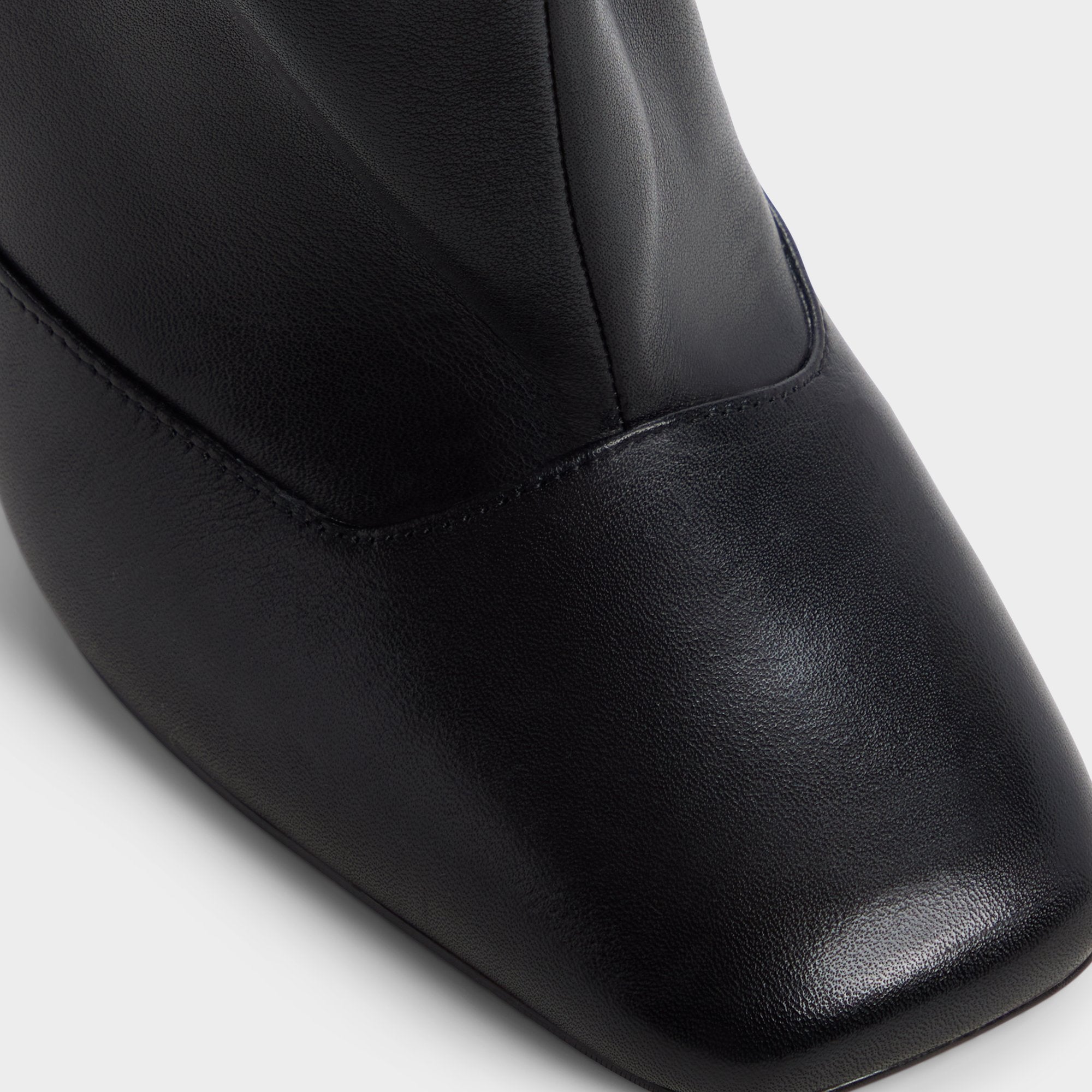 Supple black leather rises to the knee in a smooth line, ending in a sharp pointy toe and confidence-boosting stiletto that turns every entrance into slow motion. Pair with a structured blazer dress for power-lunch pitches, or slip over skinny jeans when late-night jazz calls.
