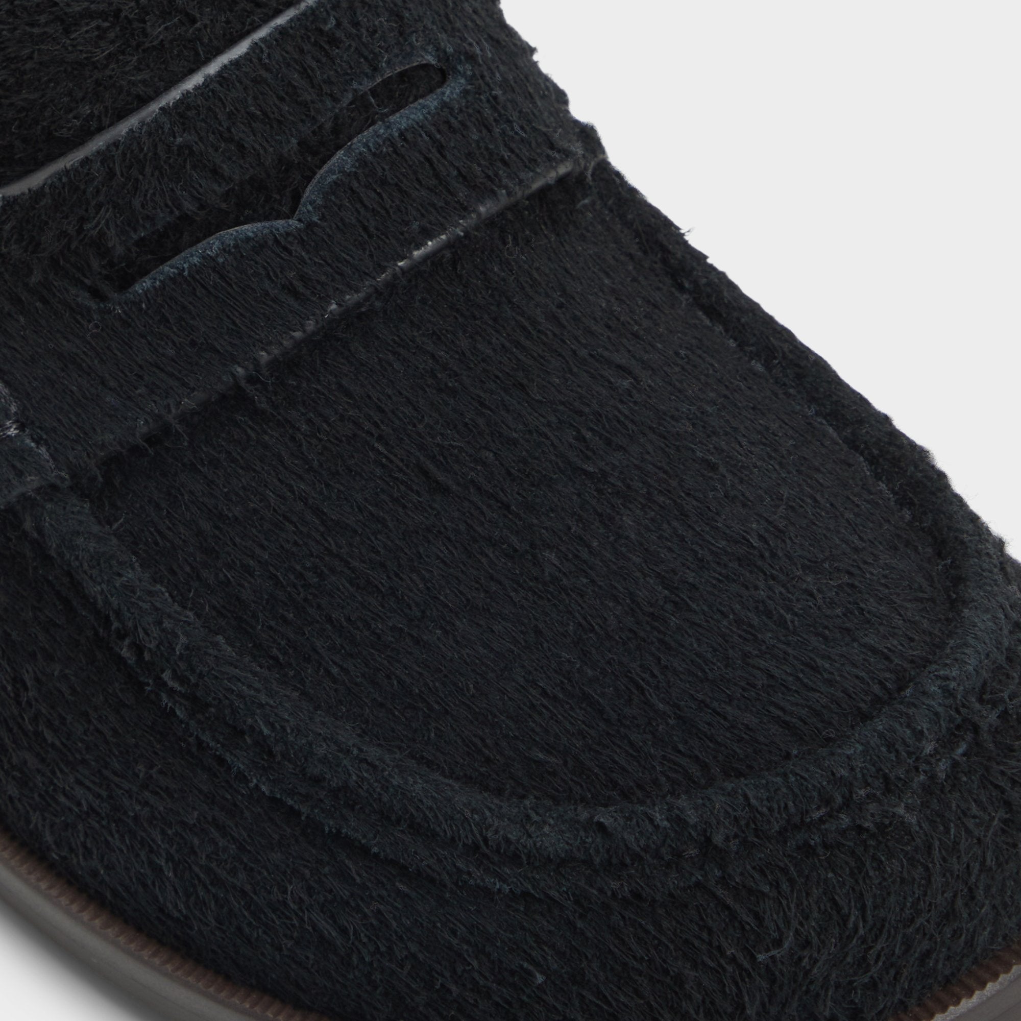 Short-napped black material on this loafer mimics the feel of suede, while its slim lugged rubber sole provides a steady grip for city strolls and late-night outings. Pair it with cuffed chinos for art gallery visits or slide it beneath a charcoal suit for intimate weddings-the textured finish adds intrigue subtly.