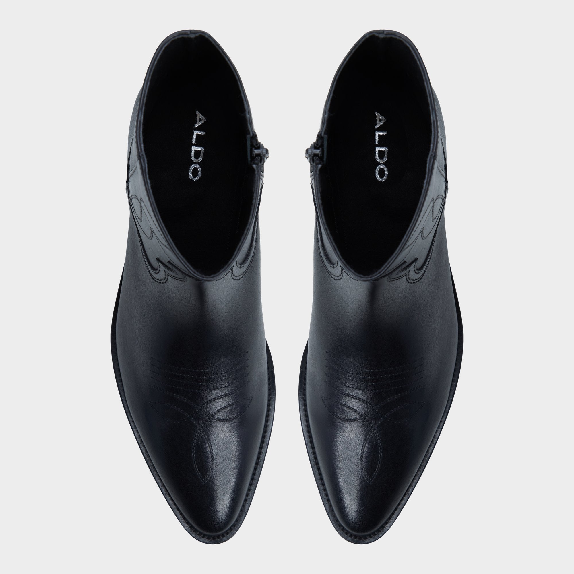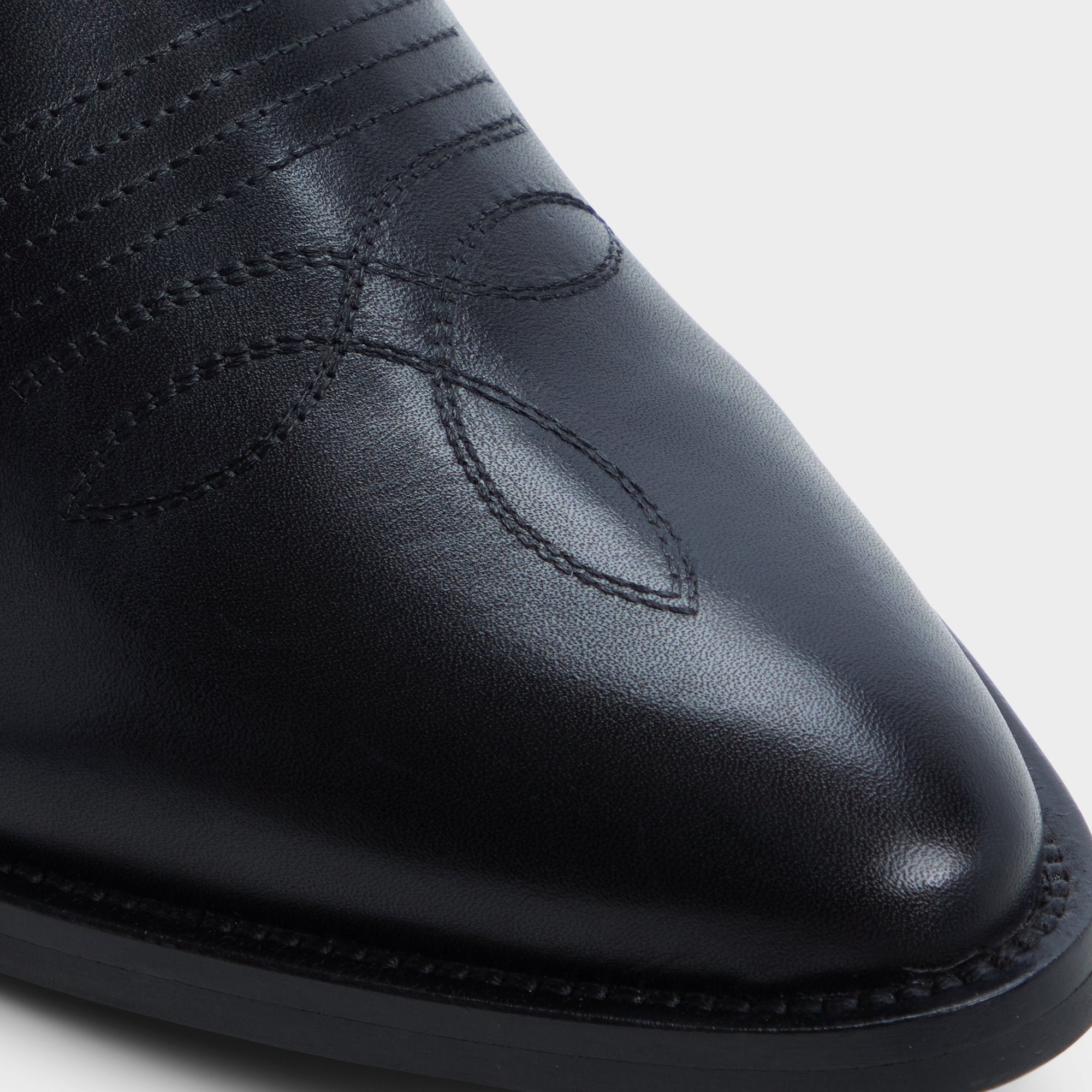 Midnight-black leather shapes this mid-calf boot, with tonal Western stitching and a snip toe, and a heel built to carry you through commutes, cafe meets, and nights out with grit. Pair it with jeans for gigs, or anchor it beneath a wool overcoat with tailored trousers for office days.