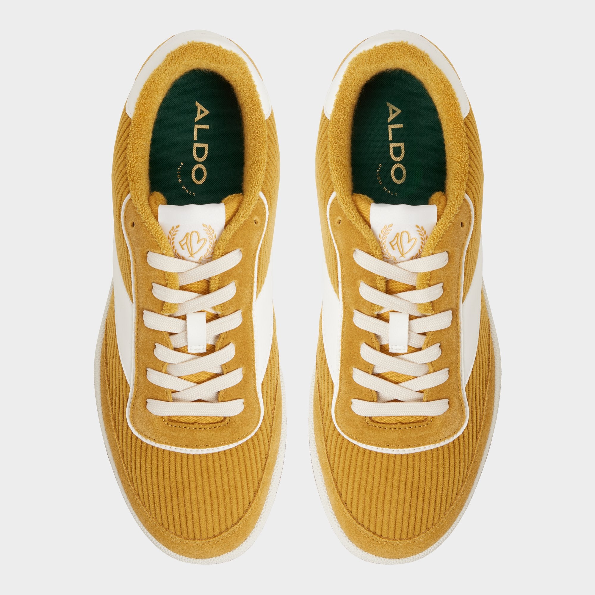 Corduroy lends tactile appeal to this low-top sneaker, while a rubber cupsole cushions urban strides for days that demand comfort from dawn to dusk, daily. Pair it with cuffed chinos for Friday coffee runs or roll with joggers for post-gym tasks—the amber hue elevates outfits.