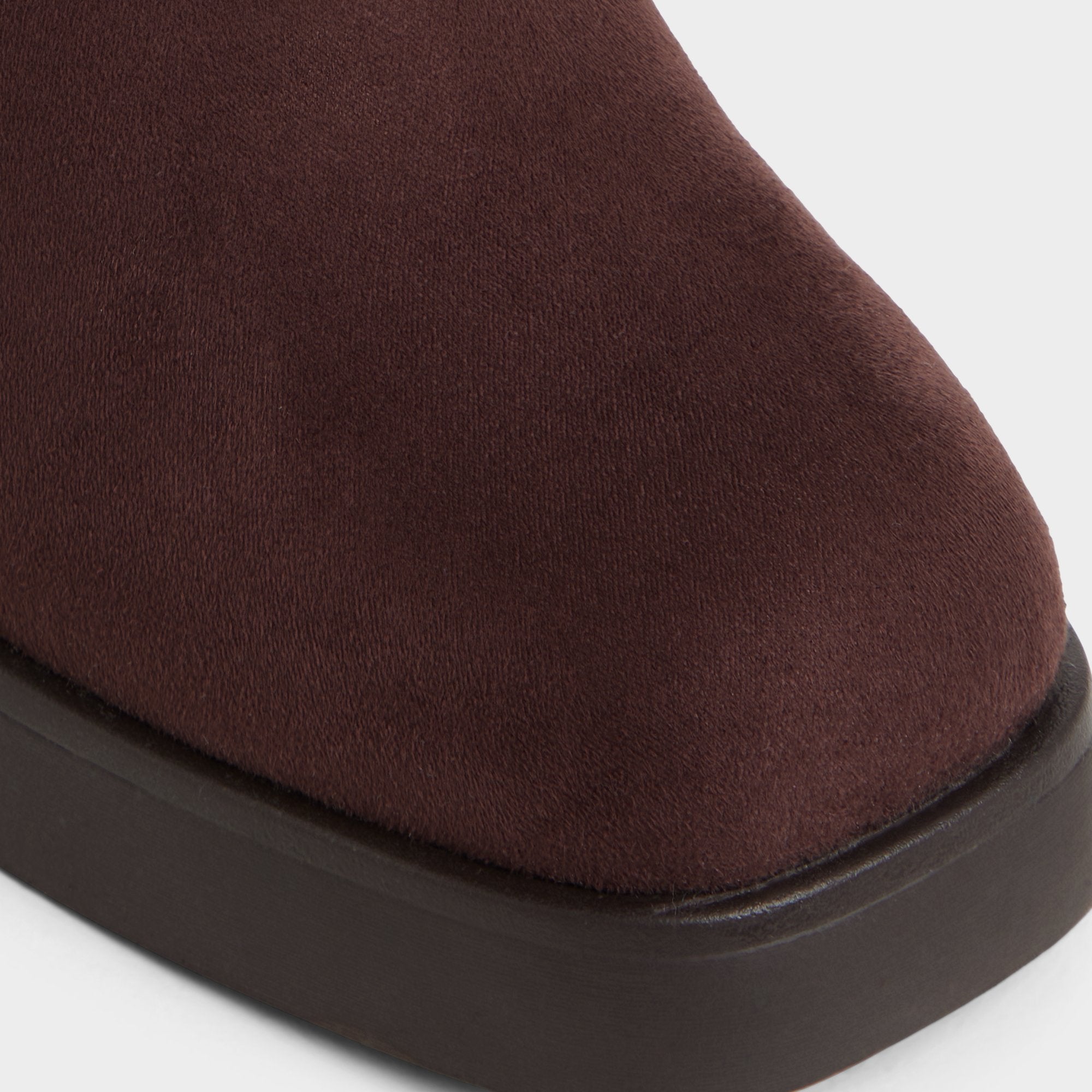 Velvety mocha suede rises to the knee in a seamless shaft, pairing a sculpted block heel with a subtle platform for retro lift and a confident, city-ready stride on chilly winter mornings. Pair with a sweater dress for coffee catch-ups, or with wide-leg trousers for office-to-dinner transitions and rooftop moments.