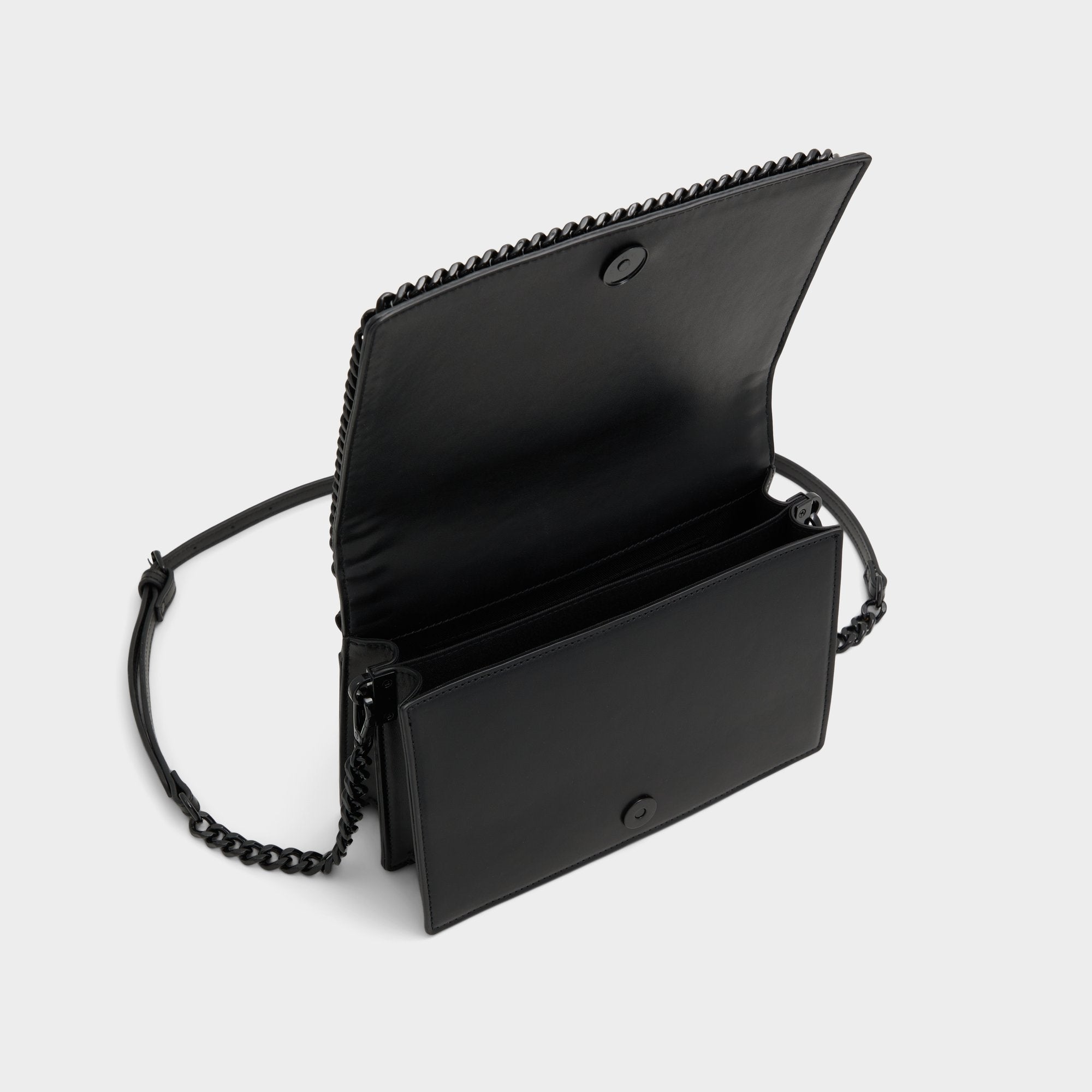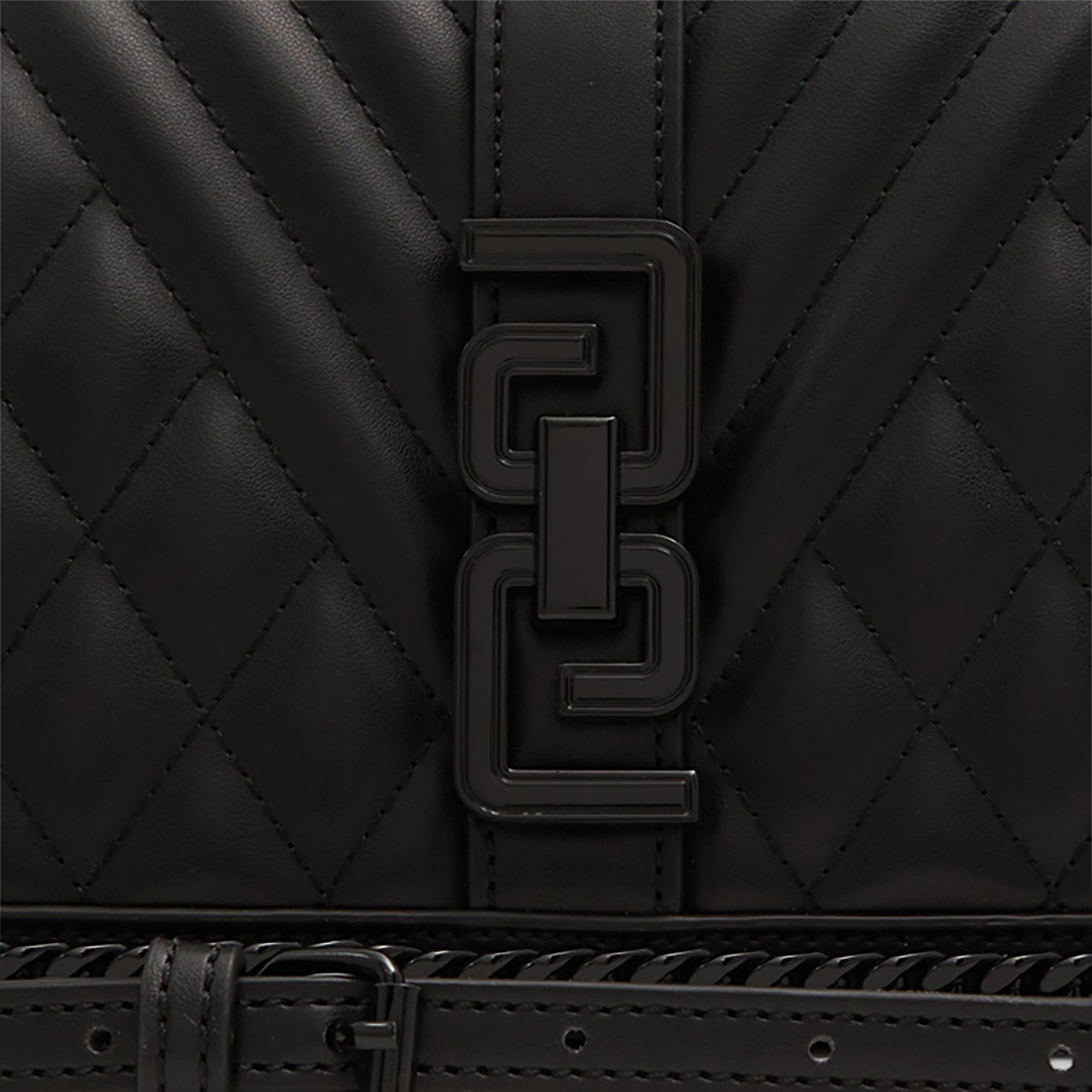 Matte chain edging meets plush diamond-quilted leather in a night-ready shoulder bag, sealed by a sculpted tonal push-lock that keeps essentials secure while dialing up drama. Sling it over a satin slip for rooftop cocktails or shorten the strap and tuck under a blazer at gallery openings.