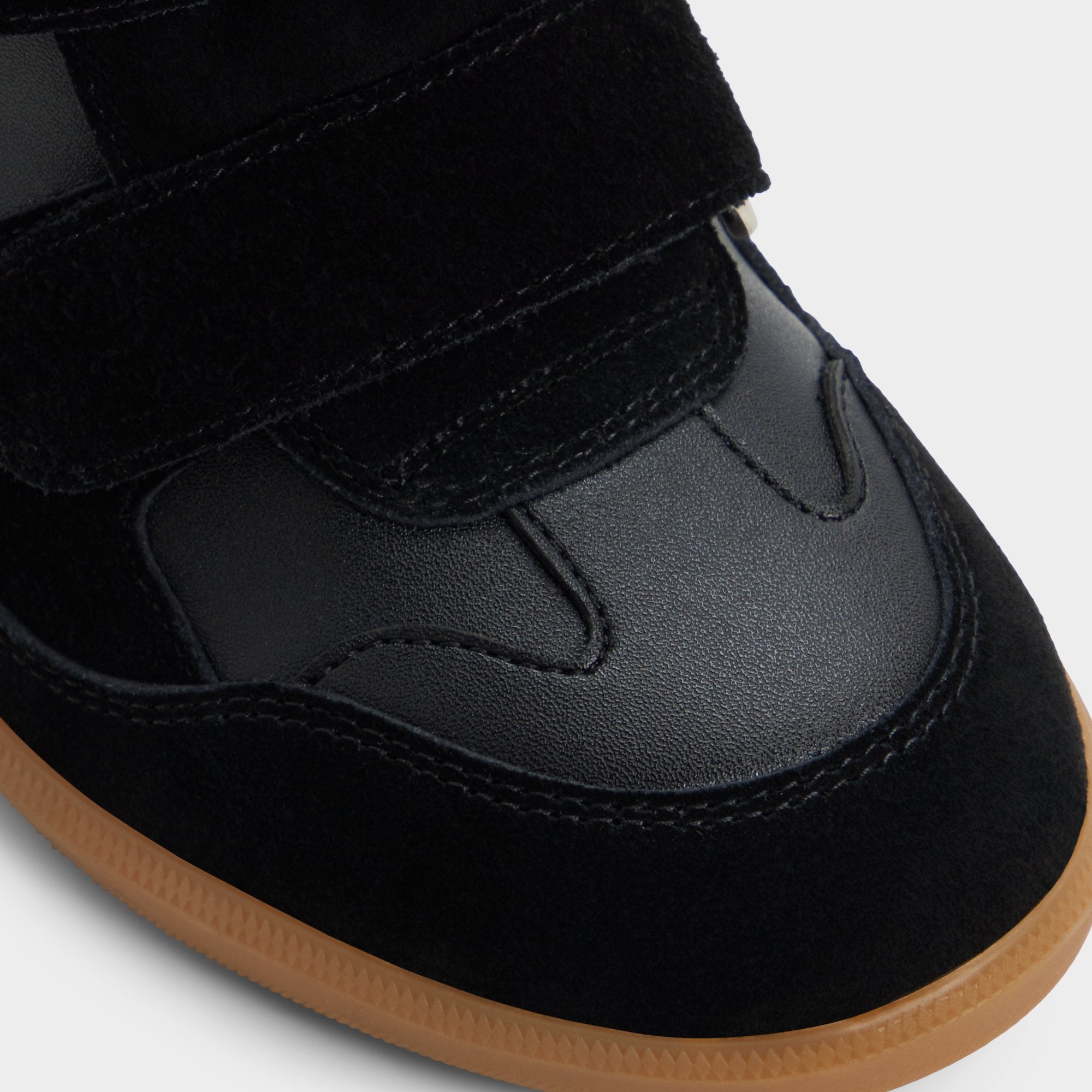 Hidden wedge height reshapes the silhouette in this suede-and-leather high-top, pairing backstage-ready lift with street-smart stacked velcro straps and a calm, confident stride that feels as effortless as it looks. Pair with cropped joggers for fast commutes, or swap in a ribbed mini and bomber when city lights glow.