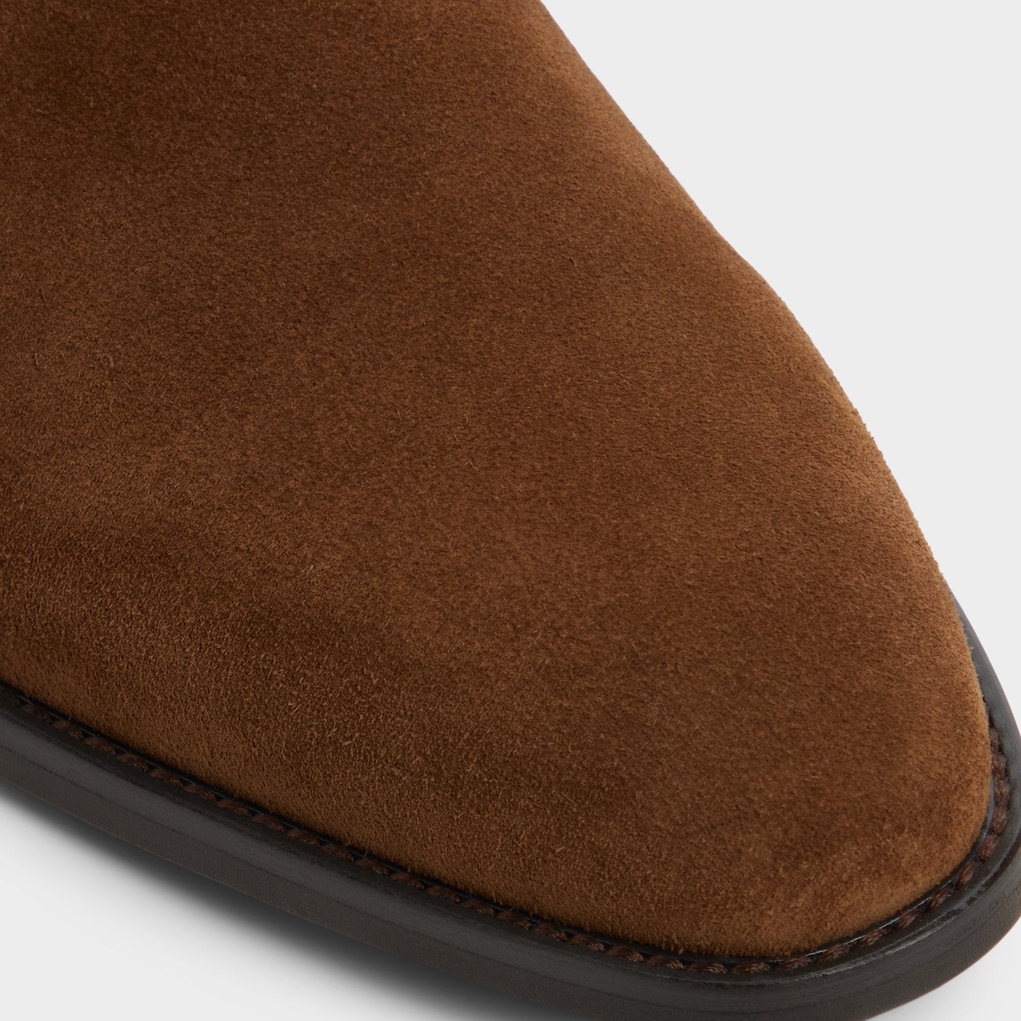 Deep chestnut suede and an almond-toe design give this Chelsea boot a distinctive look, with side gores offering easy access and low stacked heels keeping city walks comfortable. Match with grey flannel trousers for midweek meetings or style with black jeans for nights out-the velvety finish always makes an impression.