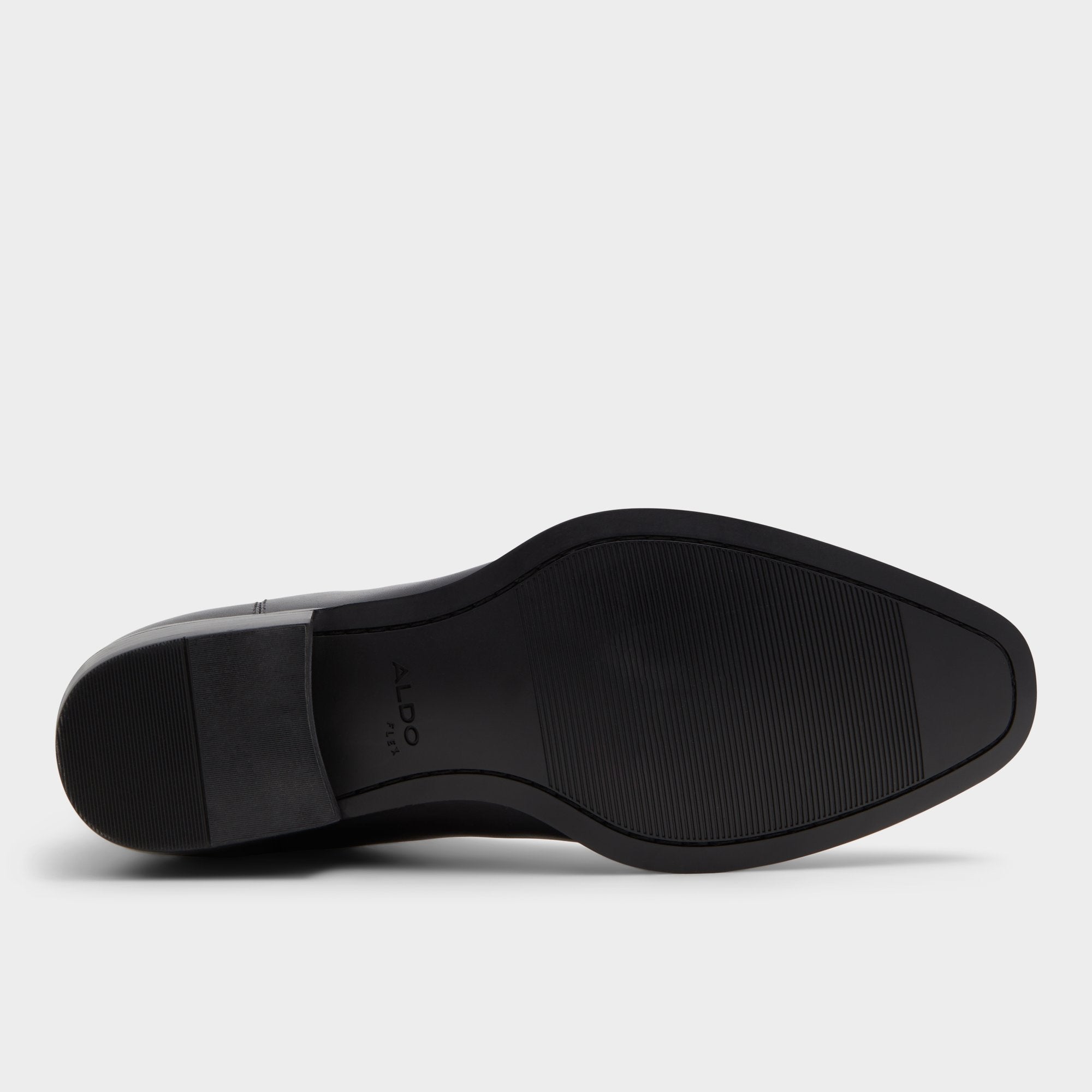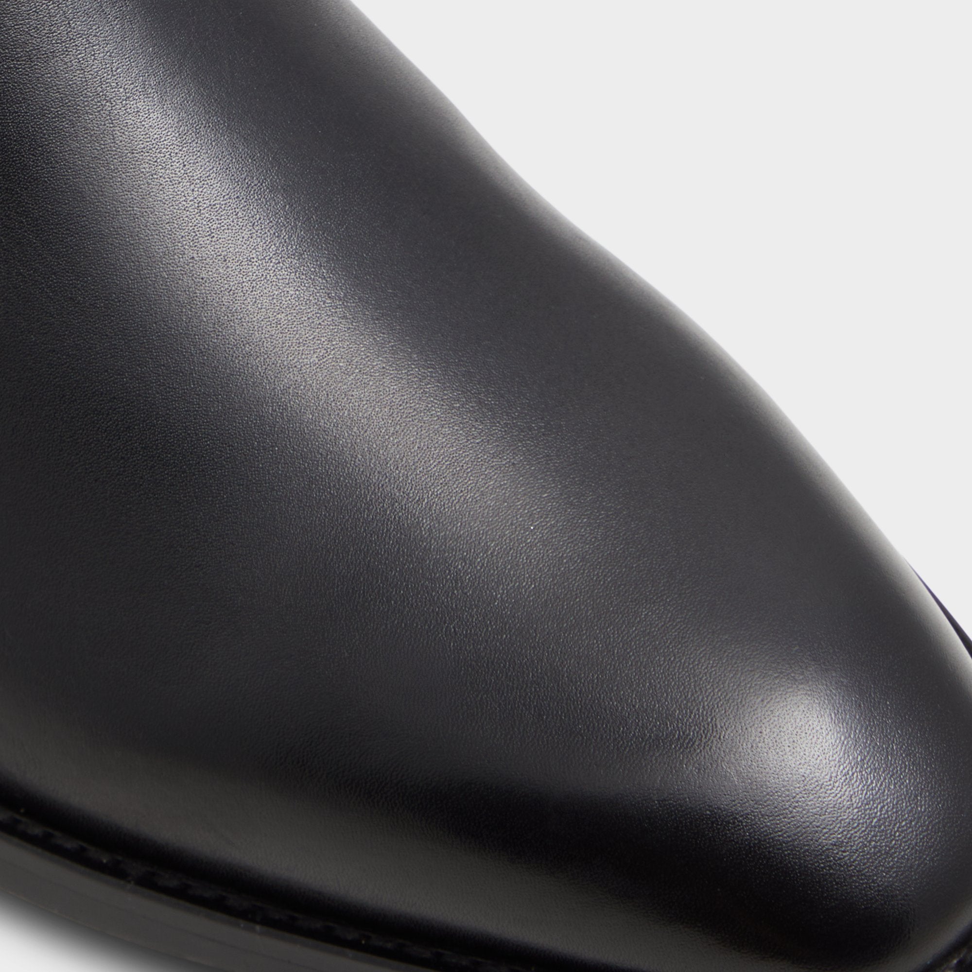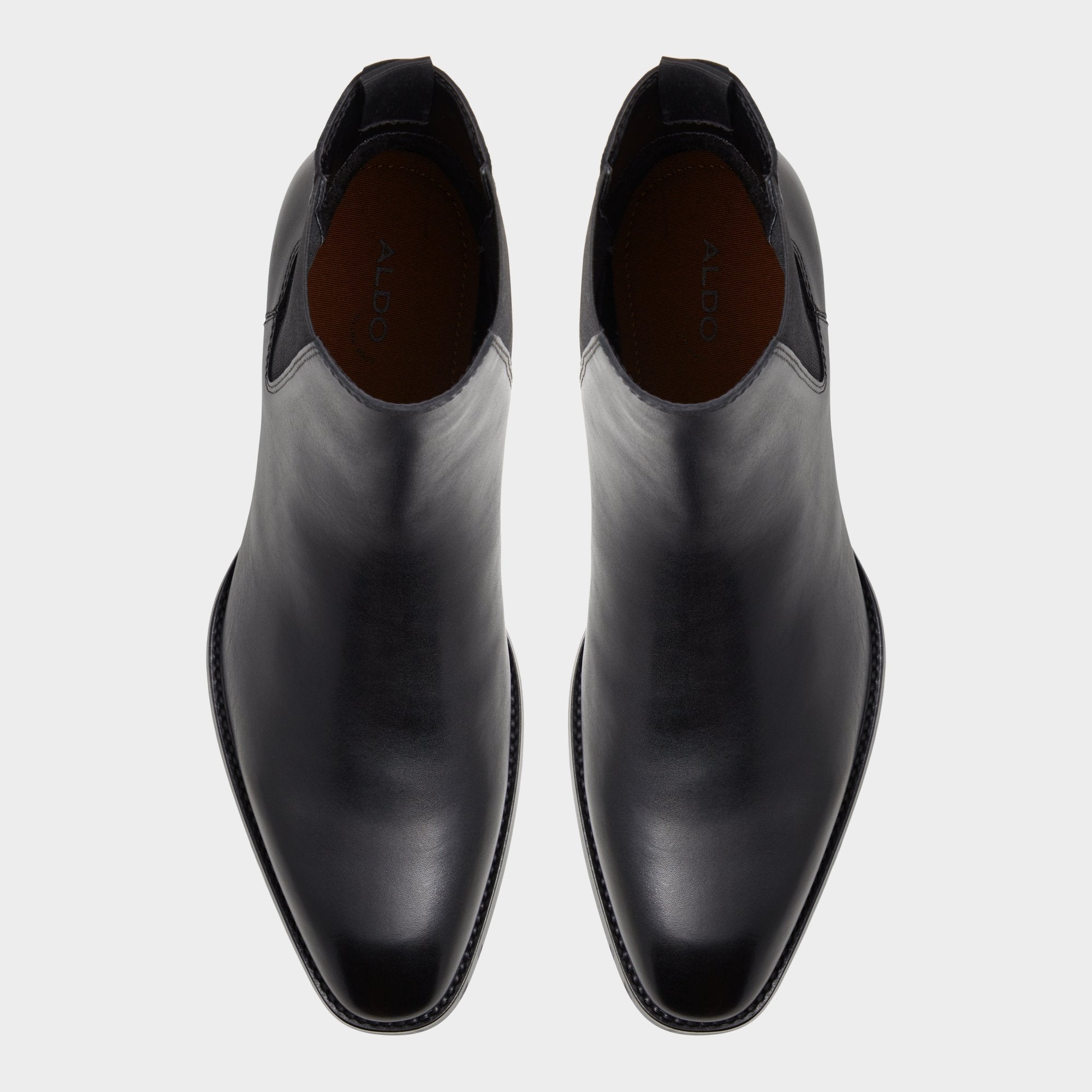 Mirror-sleek black leather seamlessly complements deep tonal elastics on this minimalist Chelsea boot, ensuring a streamlined look while a flexible rubber sole and low block heel allow for comfortable walking all day. Pair with slim wool trousers for pitch meetings, or roll with black denim for gallery nights-its minimal design fits effortlessly.