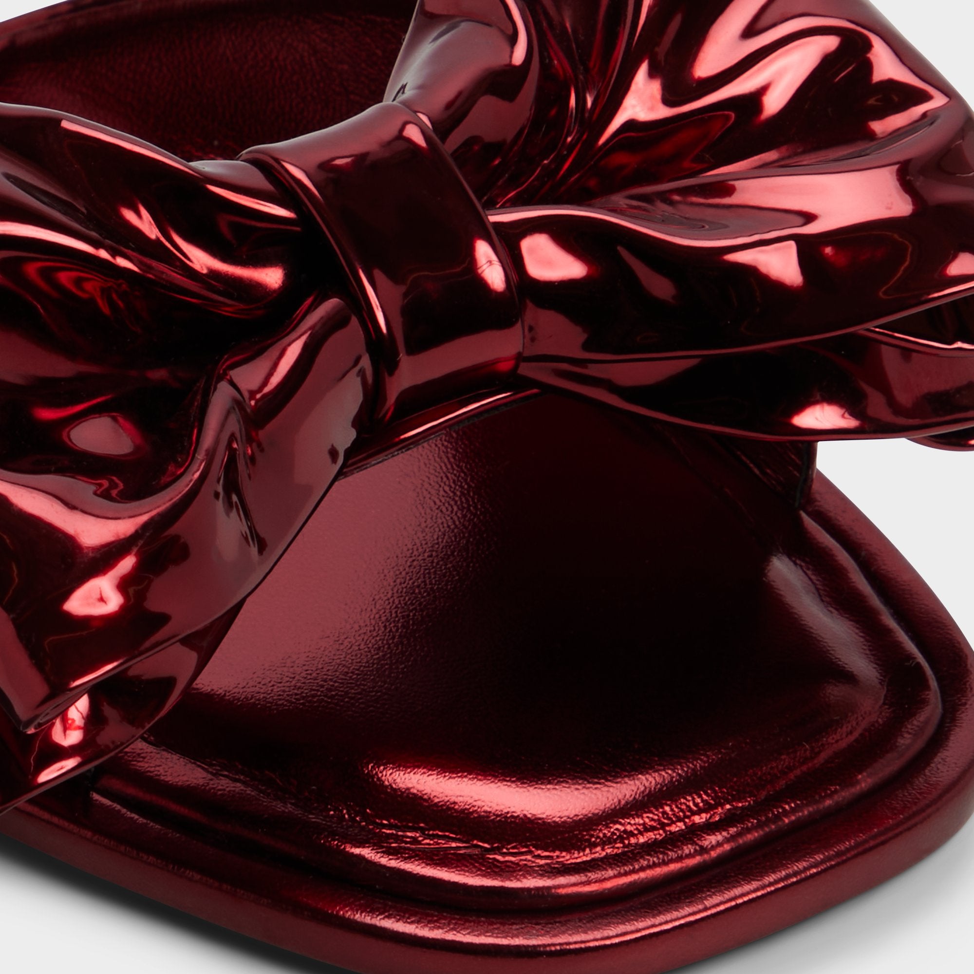 Liquid-shine patent leather catches every after-dark glimmer, while a sculptural bow sits proudly atop a sleek slide, turning the simplest slip-on moment into a quiet little celebration you can wear from coffee runs to after-hours. Pair with cropped white denim for spontaneous patio brunches, or ground a satin slip dress as rooftop drinks drift into midnight fireworks.
