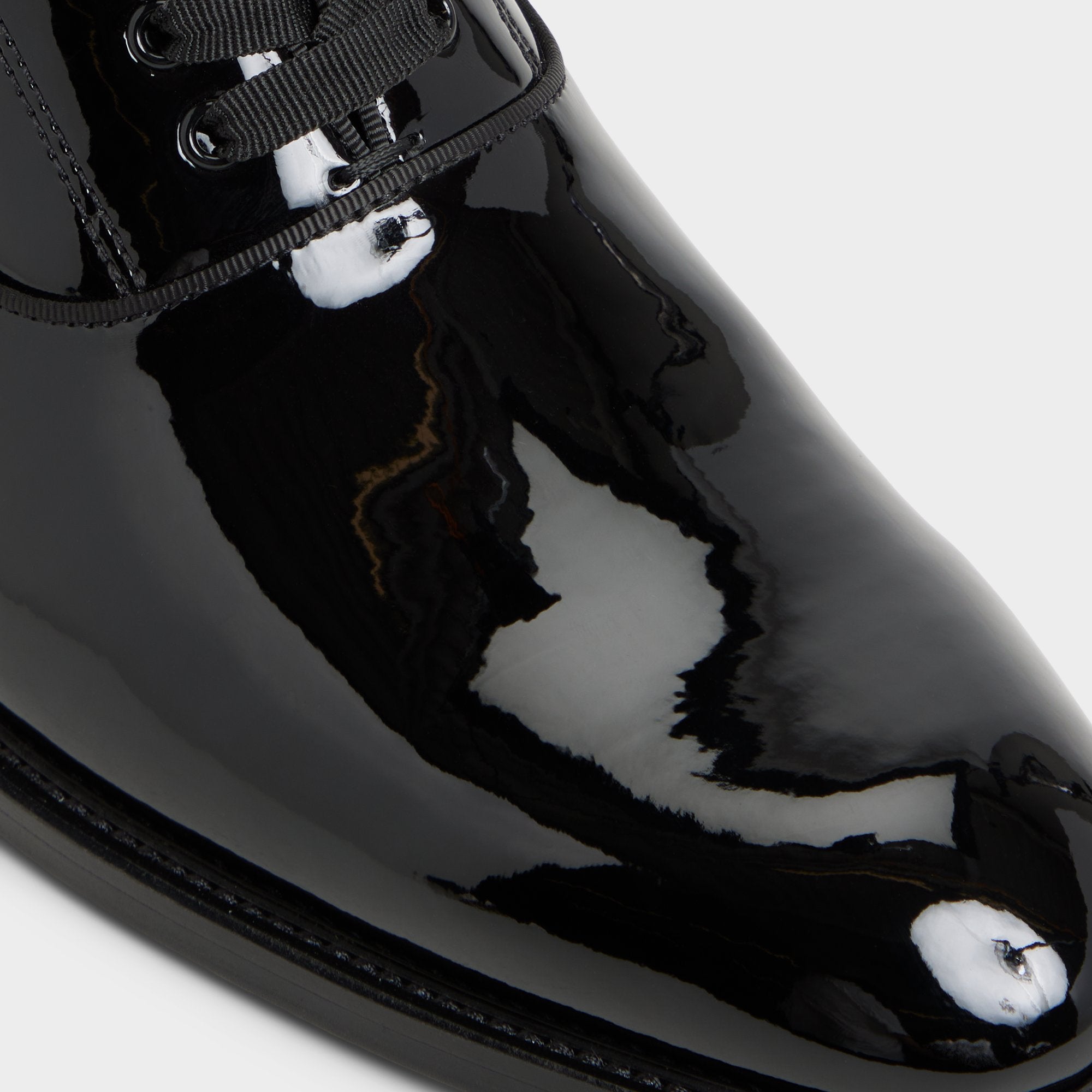Glossy patent leather shapes this Oxford’s clean silhouette, pairing an almond toe with a supple sole that moves with every step, lending street-smart polish to workdays and after-hours alike. Team it with charcoal tailoring for client dinners, or dress it with dark wool trousers for gala nights—shine speaks volumes.
