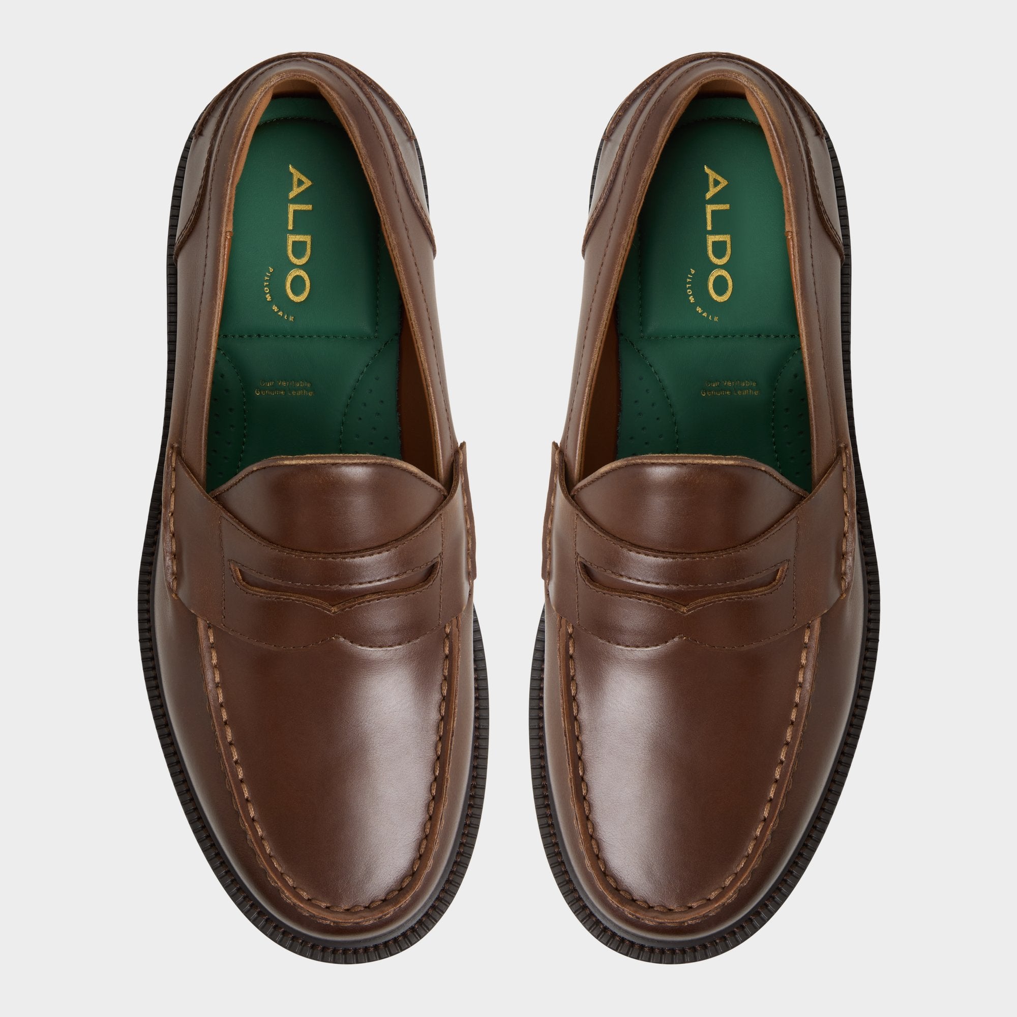 Burnished brown leather combines with classic penny strap lines on this loafer, exuding timeless style, while the rubber cup sole quietly flexes to keep every step light and supported throughout the day. Anchor them with navy chinos for meetings or team with cuffed jeans at jazz sets-the almond toe remains sharp.