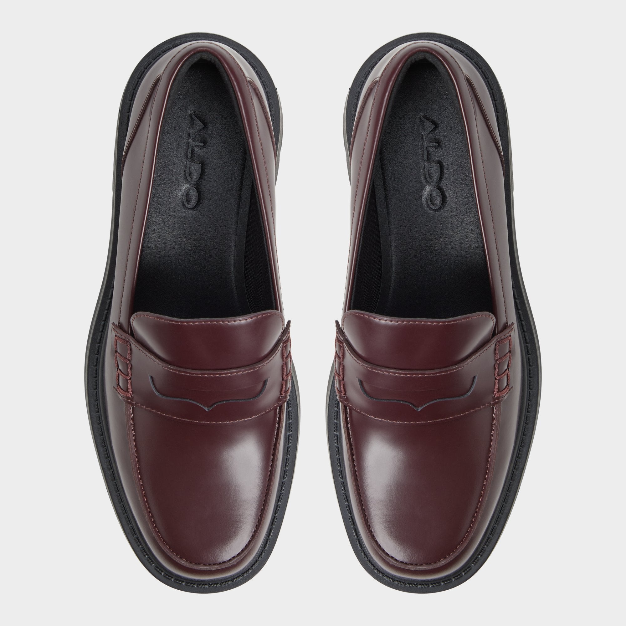 Glossy burgundy leather shapes this refined penny loafer, with a chunky lug platform sole adding stealth height and street-smart grip, transforming it into a power move for long lectures and commutes. Pair with pleated minis for campus coffee runs or ground an oversized blazer set when pitch meetings demand cool confidence.