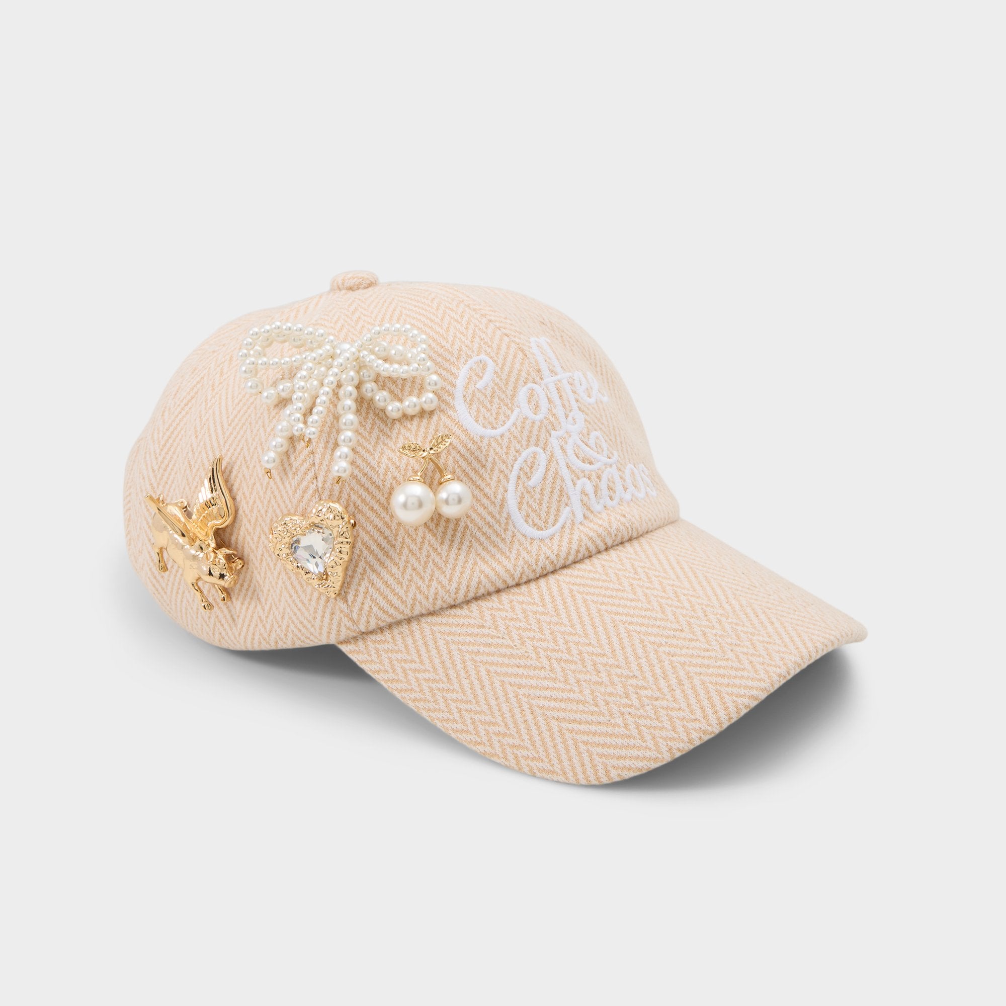 Pearl-strung bow, rhinestone-heart, sugar-sweet cherry and a winged pig join forces in this gold pin set, turning jackets, totes or bucket hats into mini mood boards. Cluster them on a vest for events or dot a clutch at parties for sparkle.
