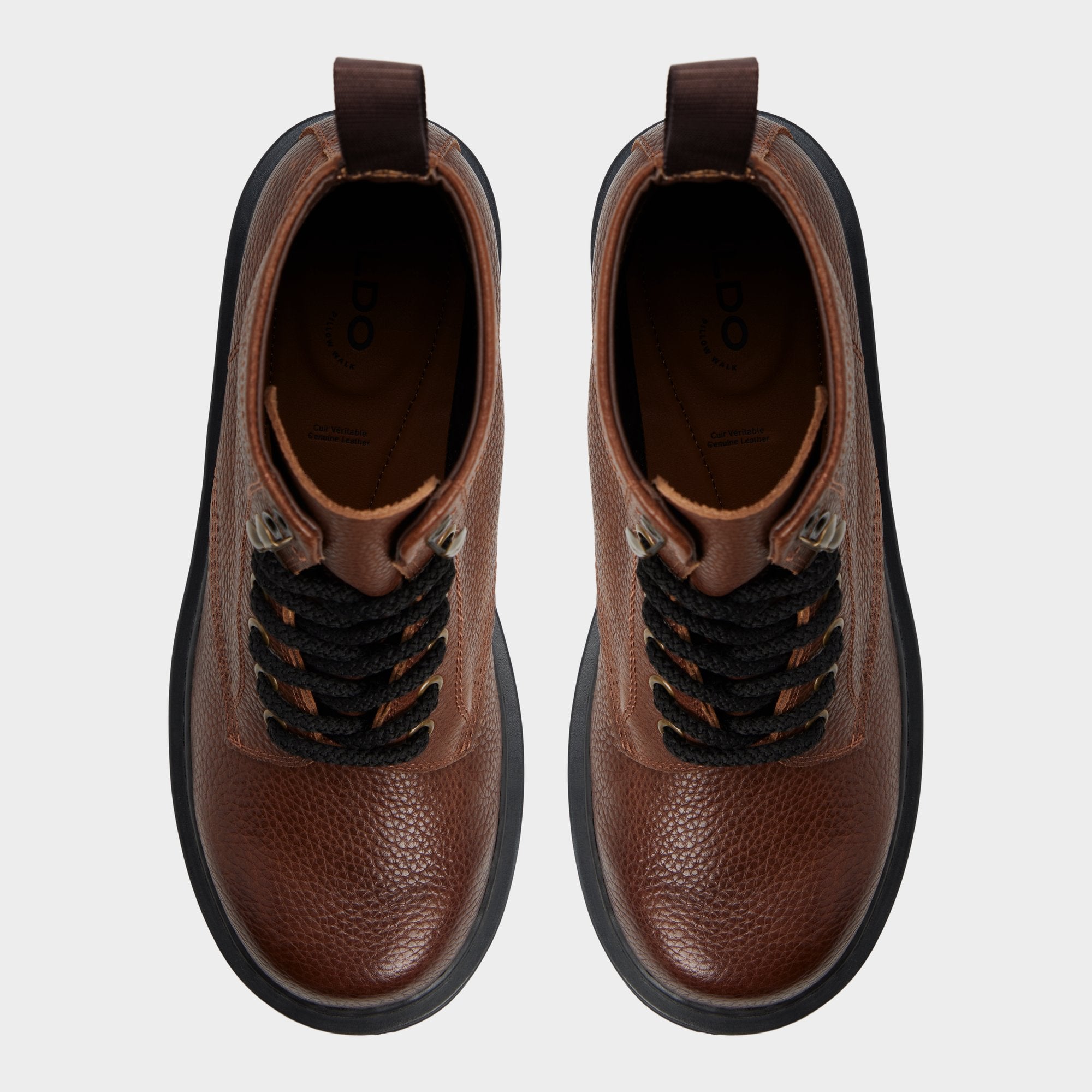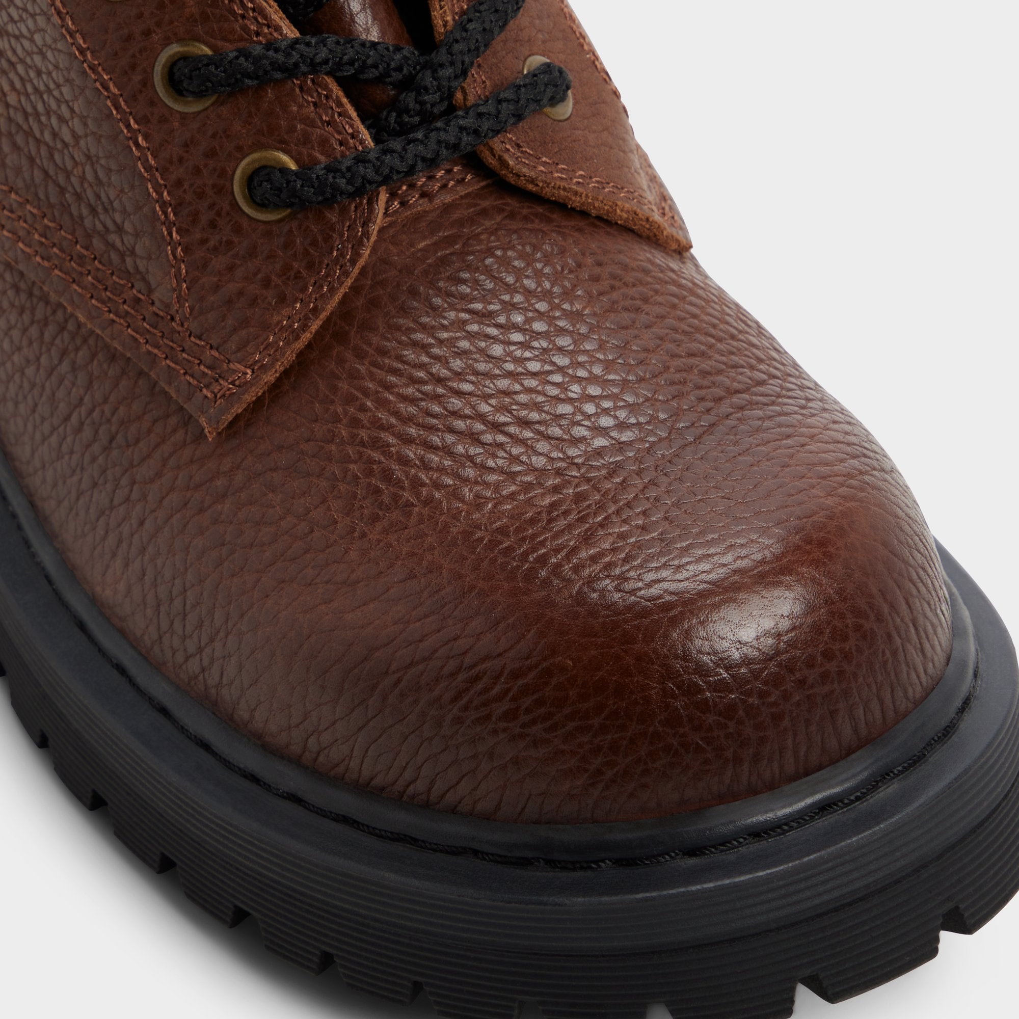 Pebbled leather combines with metal eyelets to give these combat boots a bold look, while a deep-tread rubber sole handles sidewalks and trails easily, making them a reliable choice for any weather. Pair with cuffed cargo pants for a weekend drive or anchor them with a wool overcoat for chilly walks downtown.