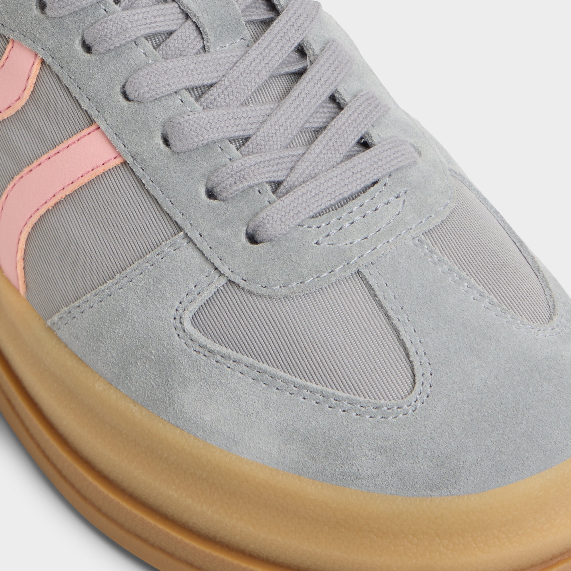 Retro-sport mix of grey suede and blush leather meets a chunky gum platform, delivering lift and bounce that keeps the city vibe lively from first latte to last call. Pair cargos for campus runs, or swap in a ribbed midi for sunset strolls, rain or shine.