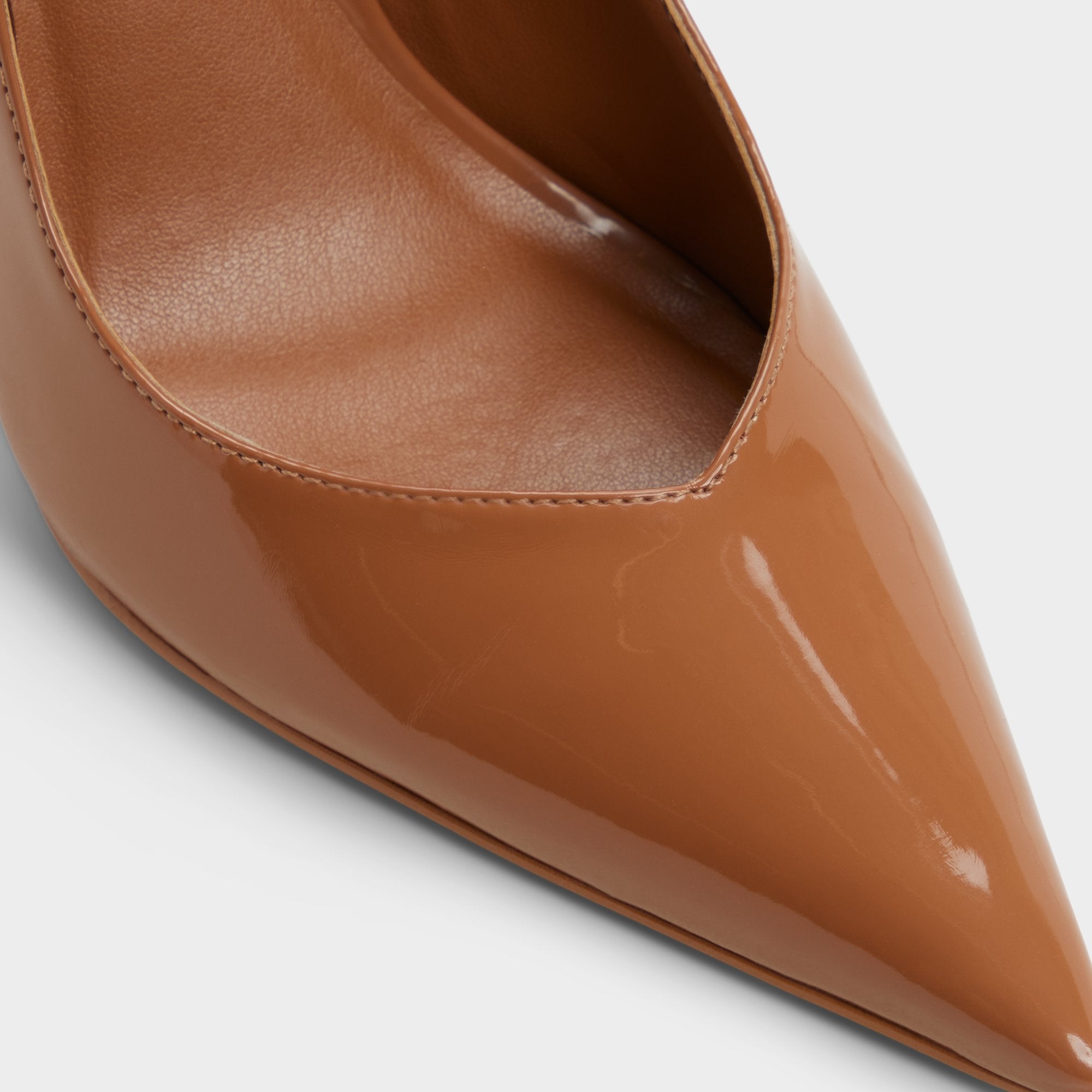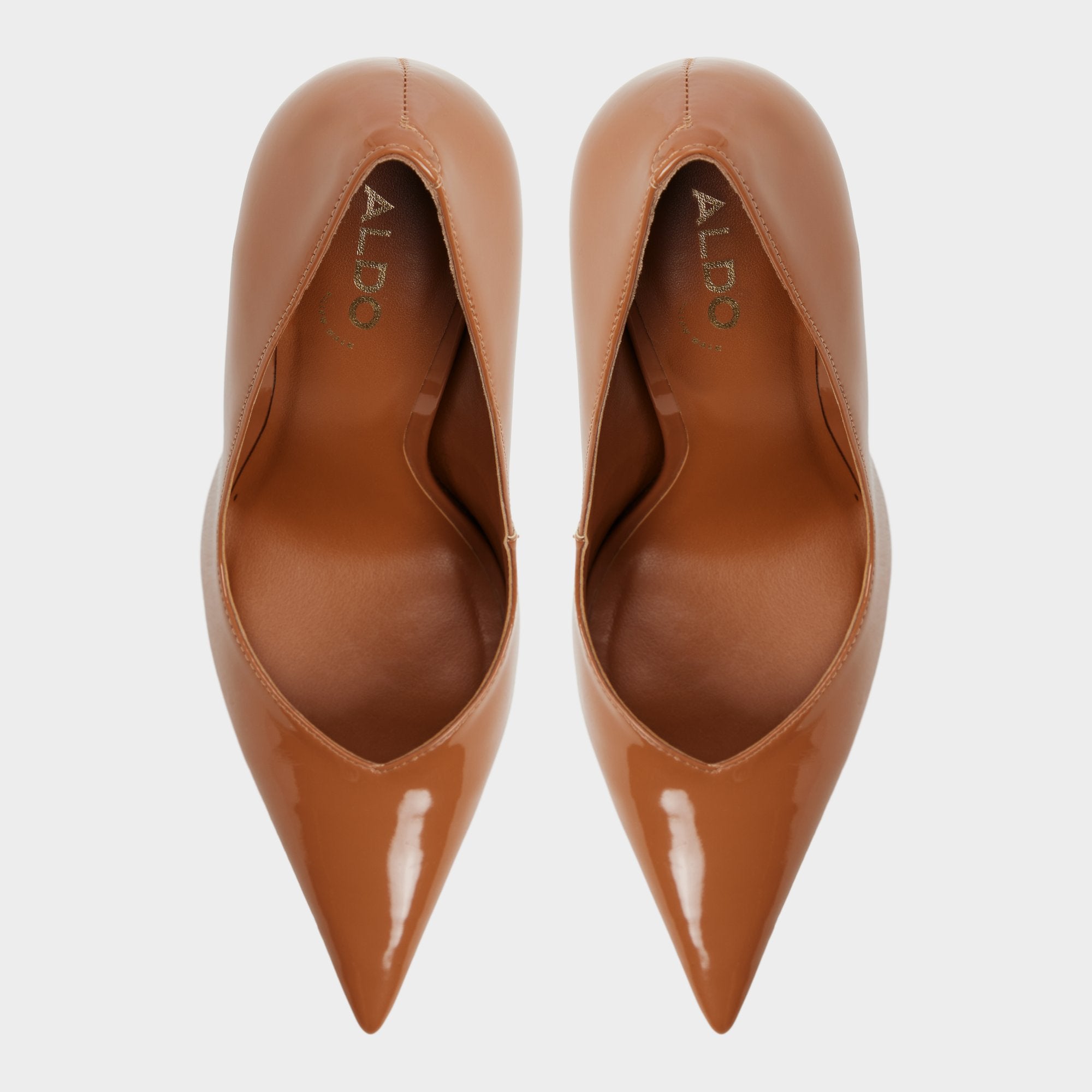 High-gloss patent elevates this cocoa pump’s sculpted silhouette, giving a refined shine that catches every city corner, while skyward heels extend your stride with confidence as city lights glitter overhead, and all-day comfort hums beneath. Pair cropped suits on promotion days, or slip under a slinky midi when midnight plans sparkle with extra joy.