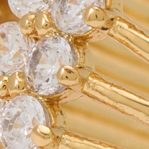Fanned gold-plated strands spread across the finger like glittering wings two rows of cubic zirconia running down the center providing arena-level sparkle all day. Stack it beside slim bands at rooftop parties or let it solo with satin slips at weddings finishing either look brightly.