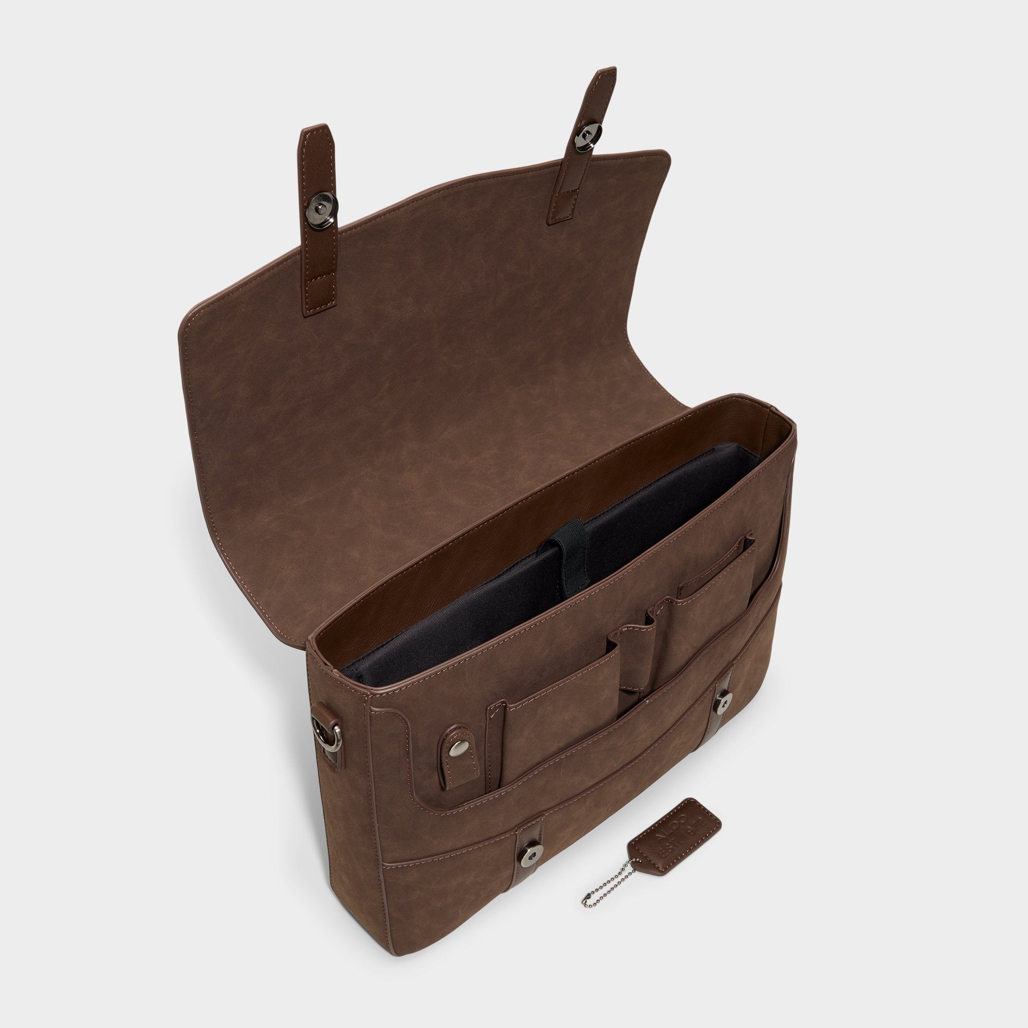 Classic design. Everyday ease. This brown messenger bag is built to keep you organized in style. A roomy interior compartment with multiple pockets makes space for all your essentials, while a magnetic snap closure keeps everything secure. Designed with a removable, adjustable crossbody strap for hands-free wear, it moves with you from workdays to weekends with effortless polish.
