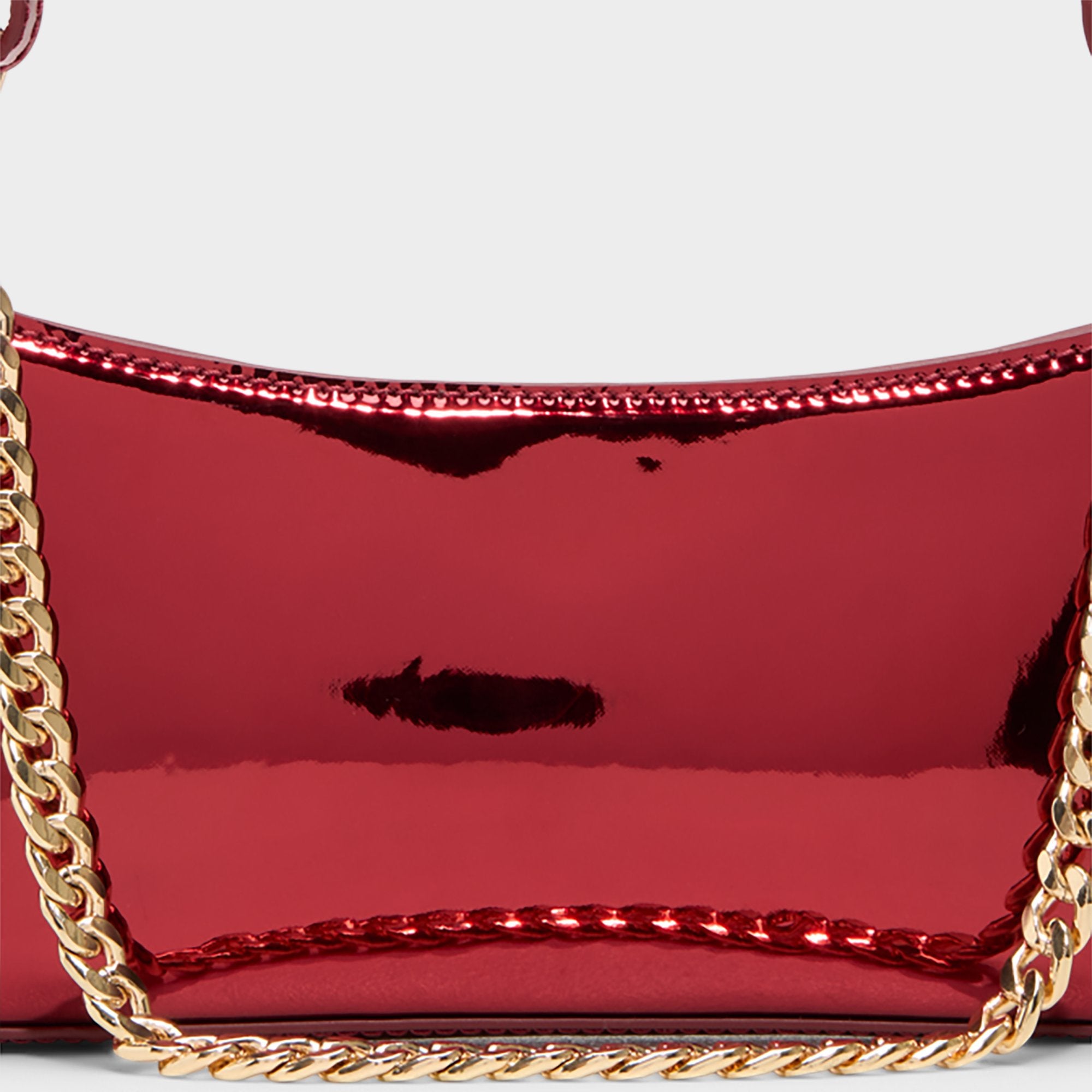 Crimson patent leather shines on this sleek baguette, turning every city night into energy with an adjustable strap that frees the hands and a streamlined silhouette built for easy, all-night appeal. Carry it with a satin slip for rooftop dates or sling it over oversized knits for midnight bites, finishing the look with city-ready polish.