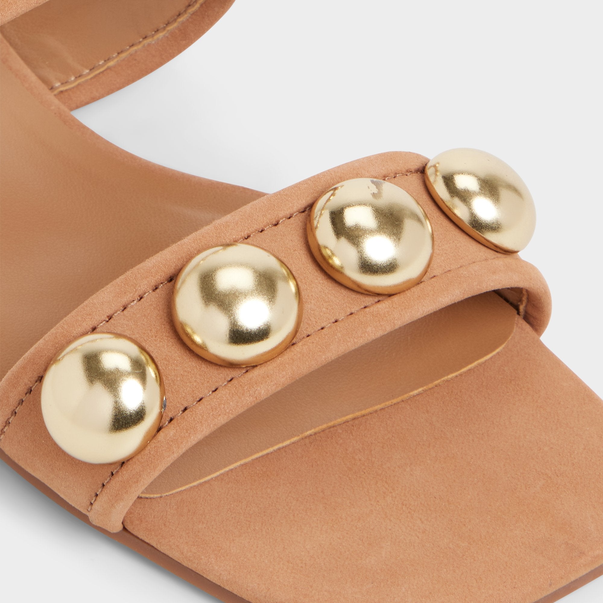 Gold studs crown the smooth leather straps of this square-toed slide, injecting rock-chic sparkle into daily errands while cushy soles promise all-day comfort, and the silhouette stays surprisingly versatile for city mornings and rooftop dusk. Pair with linen shorts for market strolls, or slide into a satin midi for patio drinks and sunset city walks.