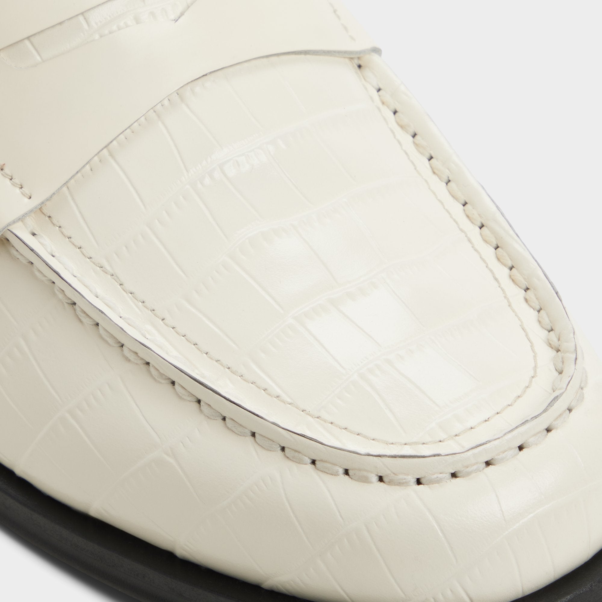 Warm cream croc-textured leather gives these penny loafers a subtle confidence, while a supple leather lining and slim rubber outsole make every step smooth from office meetings to evening socializing. Pair them with a navy suit for those key presentations or go casual with cuffed chinos at gallery visits-the croc embossing adds a touch of style naturally.
