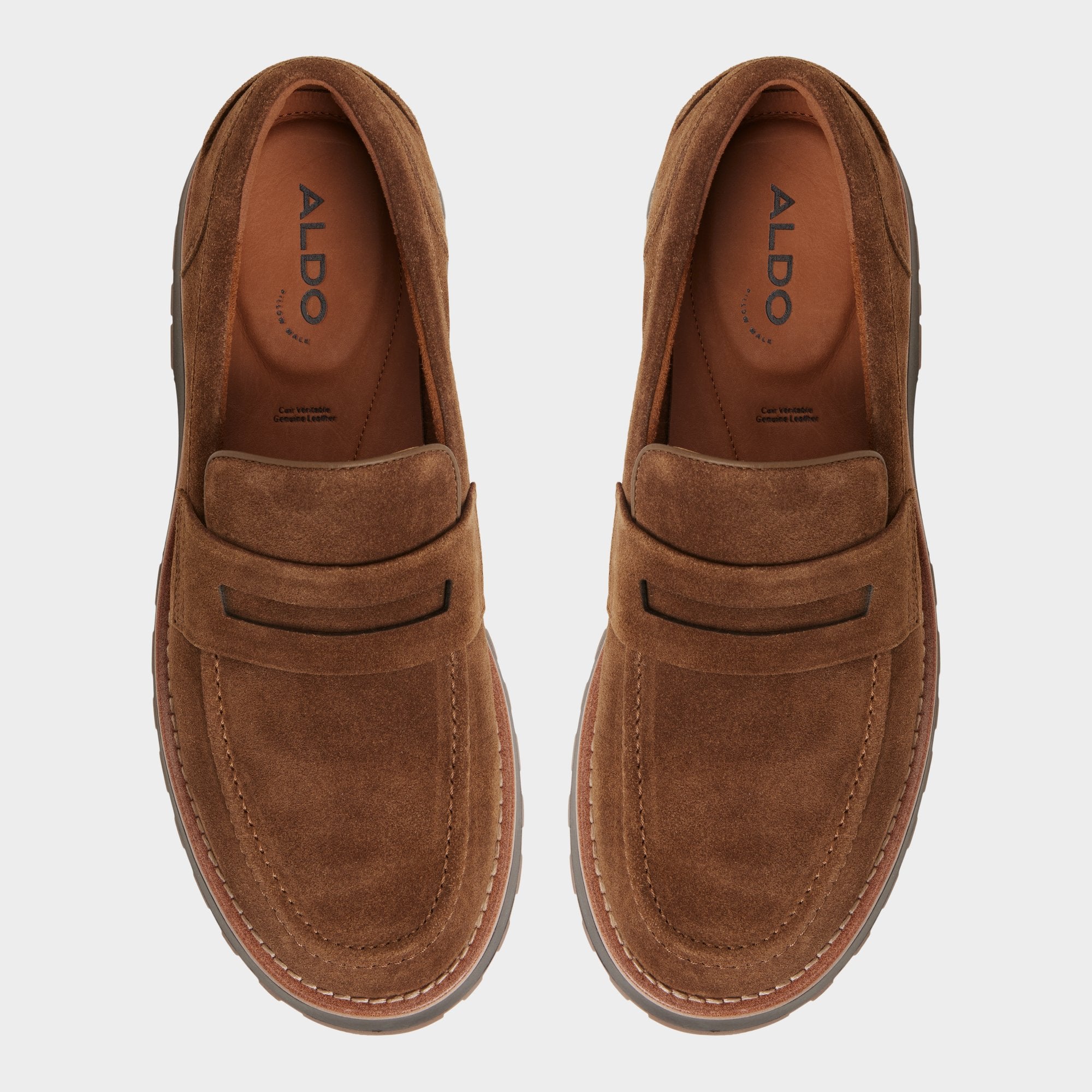Suede layers on a chunky lugged outsole give this penny loafer both laid-back texture and reliable grip, while supple leather lining ensures comfort from busy Mondays to late-night city strolls. Match with cuffed jeans for brunch catch-ups or slide under wool trousers when office dress codes ease post-work.