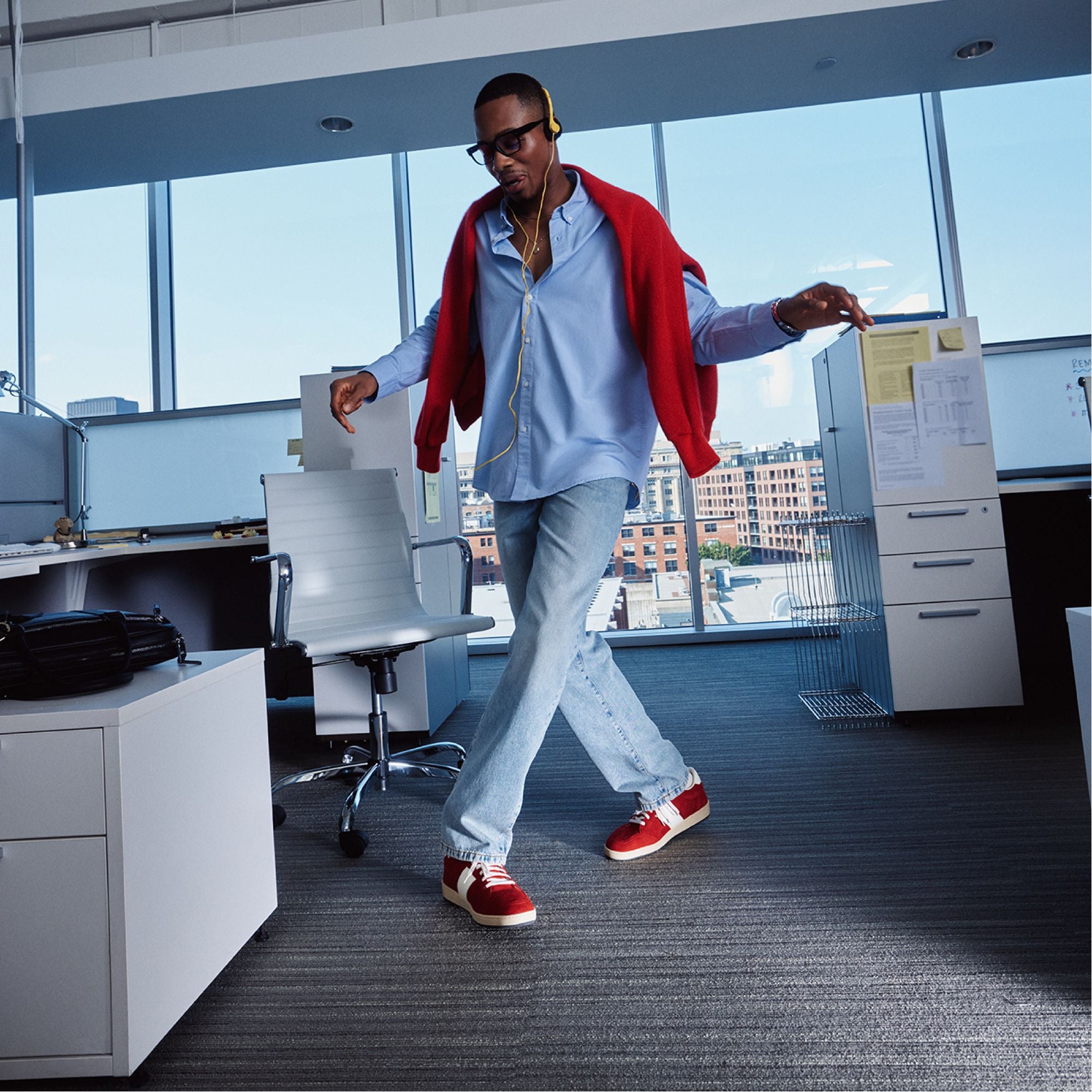 Crimson suede gets energized by a white side stripe on this low-top sneaker, with a cushy cupsole that keeps landings soft whether sprinting for the subway or looping city blocks. Pair it with cuffed jeans for game-day hangs or switch to tailored joggers for rooftop drinks after dark.