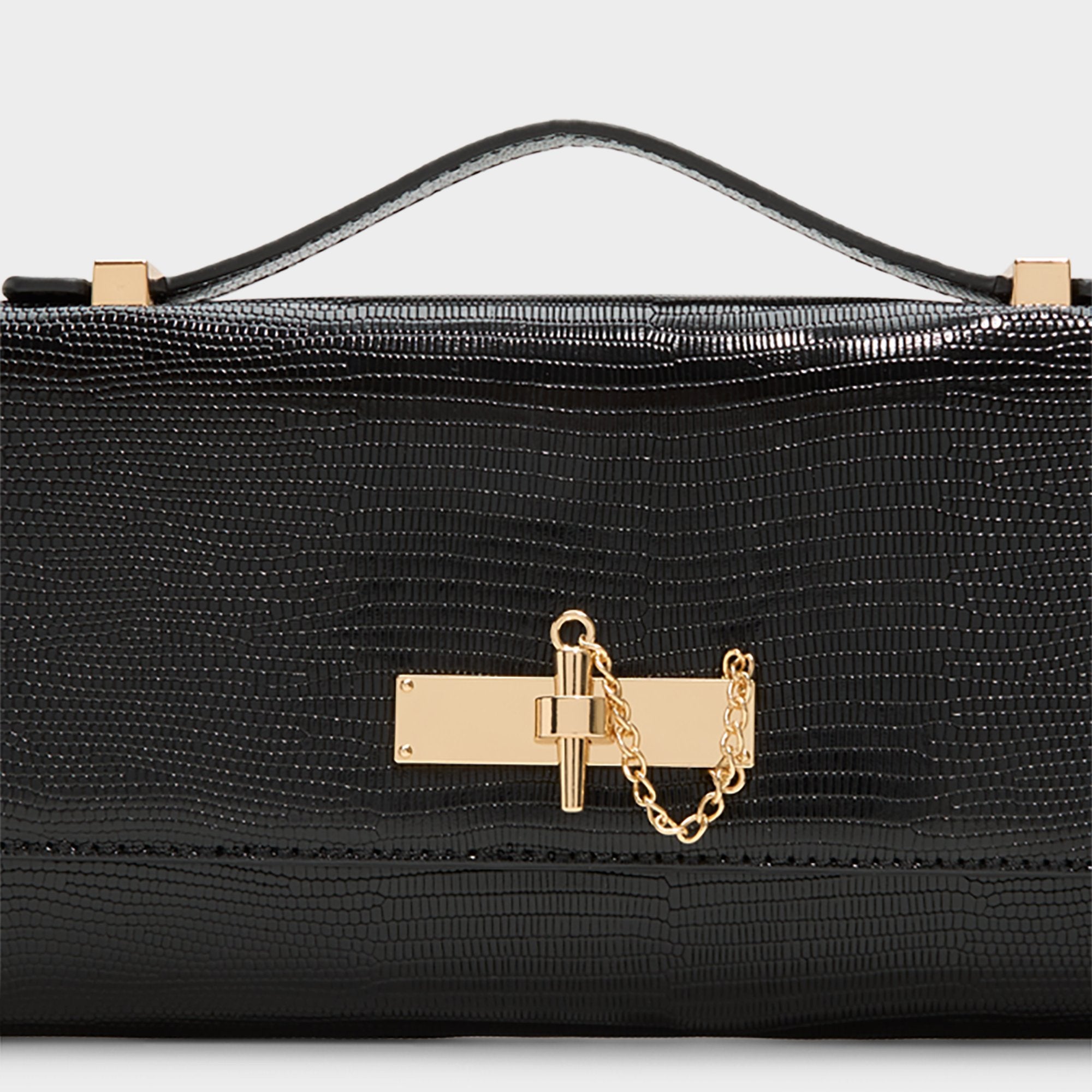 Ultra-slim lizard-skin silhouette exudes after-dark poise, with a chain-tipped turn-lock that adds subtle drama and keeps essentials secure from first toast to the final taxi ride through crowded nights and quiet mornings alike. Carry it by the petite handle with a satin slip for rooftop soirées, or tuck it under your arm with denim for gallery nights.