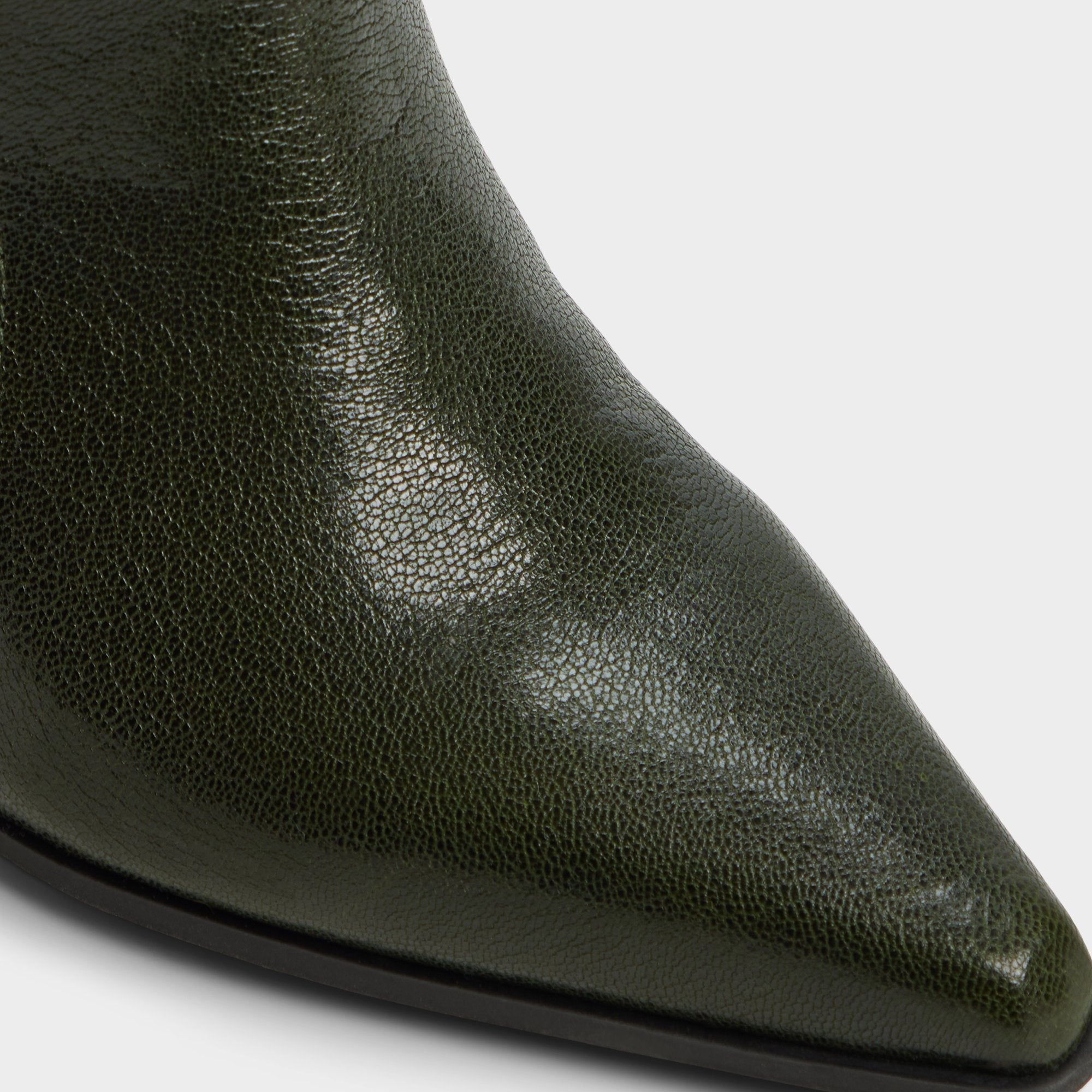 Deep forest leather wraps knee-high boots with a sculpted block-heel silhouette and buckle detail, channeling road-trip freedom and city polish, while a cushioned lining keeps each step confidently on track. Pair with ribbed dresses for gallery afternoons, or ground tailored shorts at rooftop mixers for all-day city style.