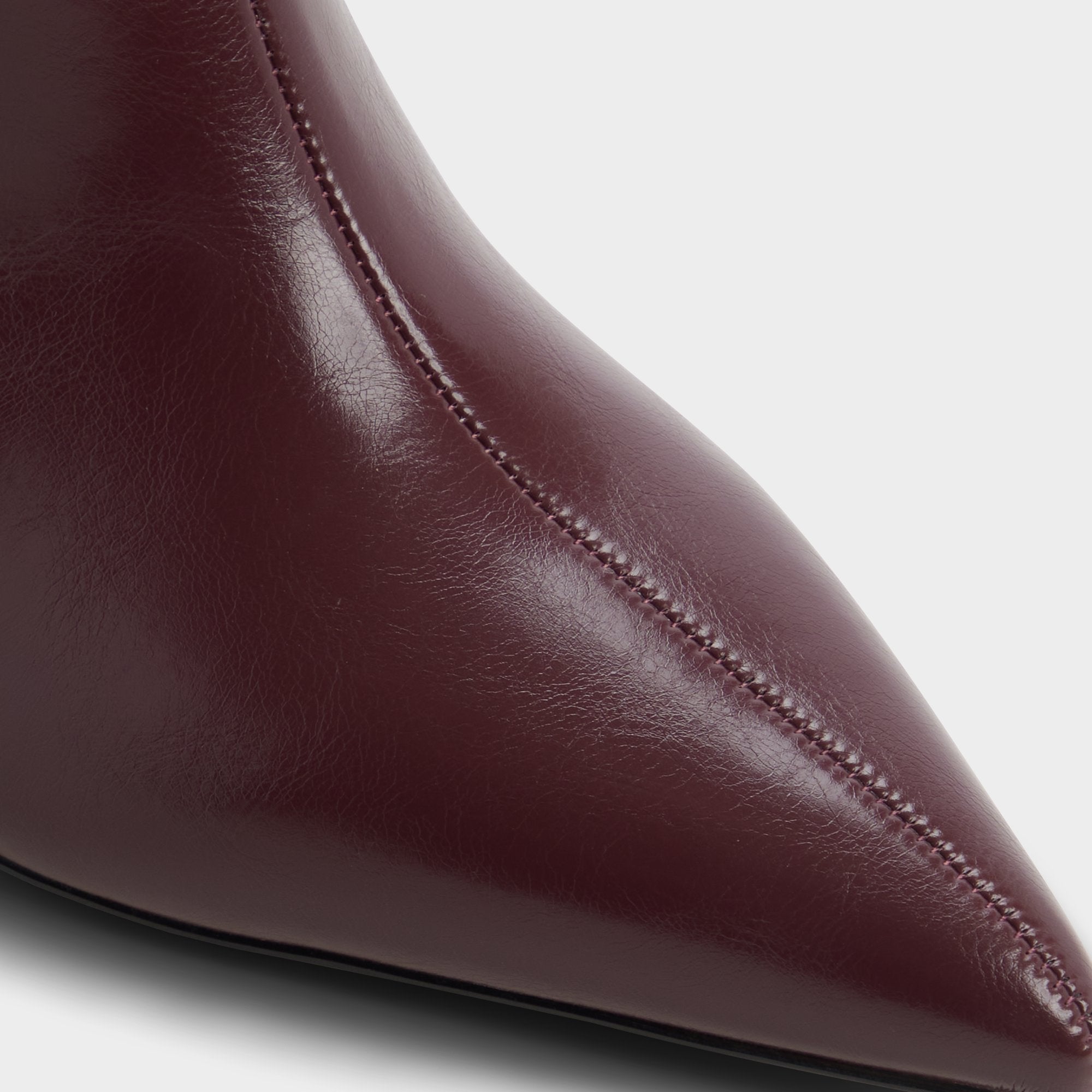 In velvety cabernet leather, this knee-high boot shoots sleekly skyward and surprises with a sculpted stiletto that curves like a comma to add drama to pavement strides. Pair with a sharp blazer dress for boardroom boldness or pull over skinny denim when jazz nights call for effortless cool.