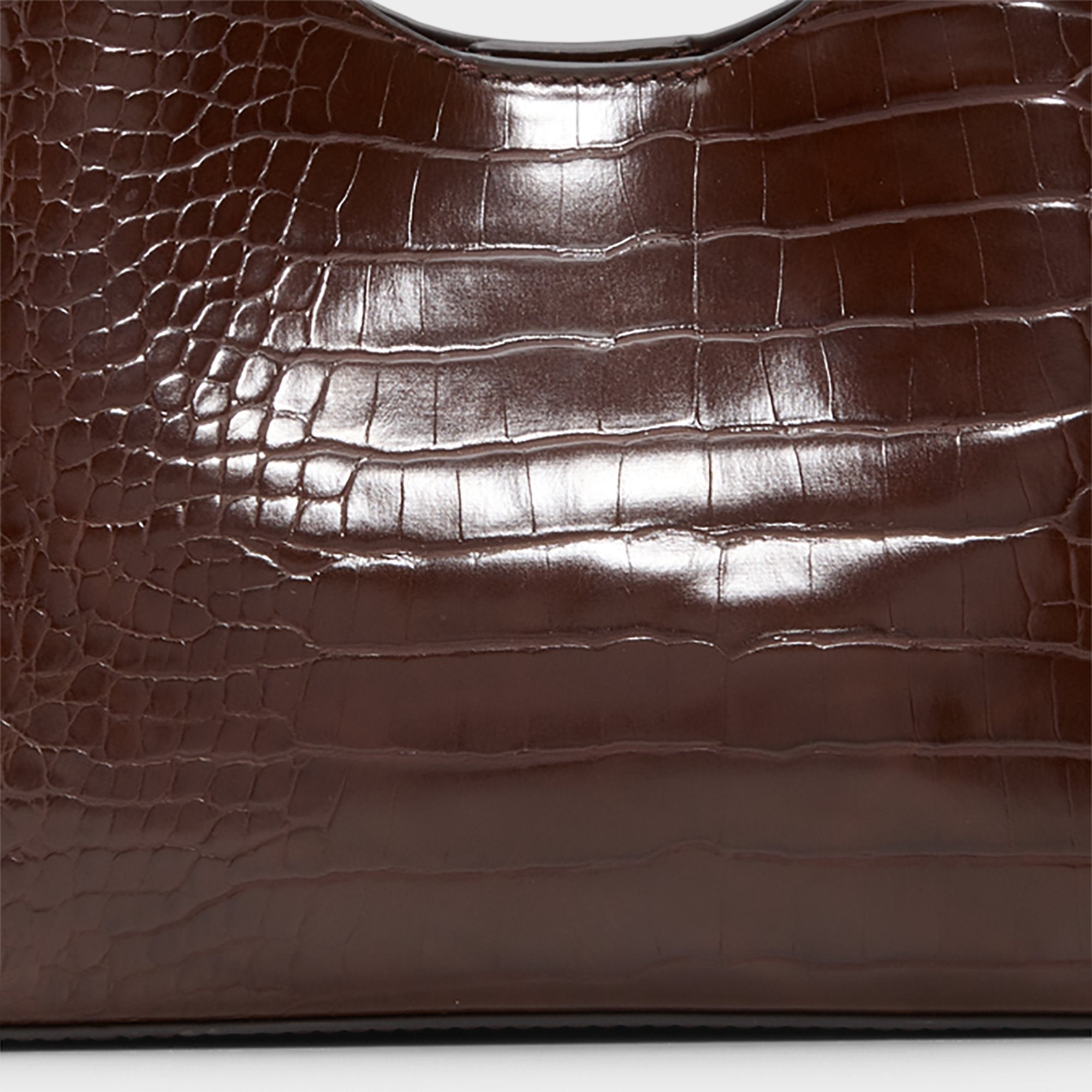 Elevate your look with the Smallharperr hobo bag, crafted in glossy brown croc texture that exudes confidence and edge. Its sleek, curved silhouette offers a daring twist on a classic shape, making it the perfect accessory to turn heads wherever you go.