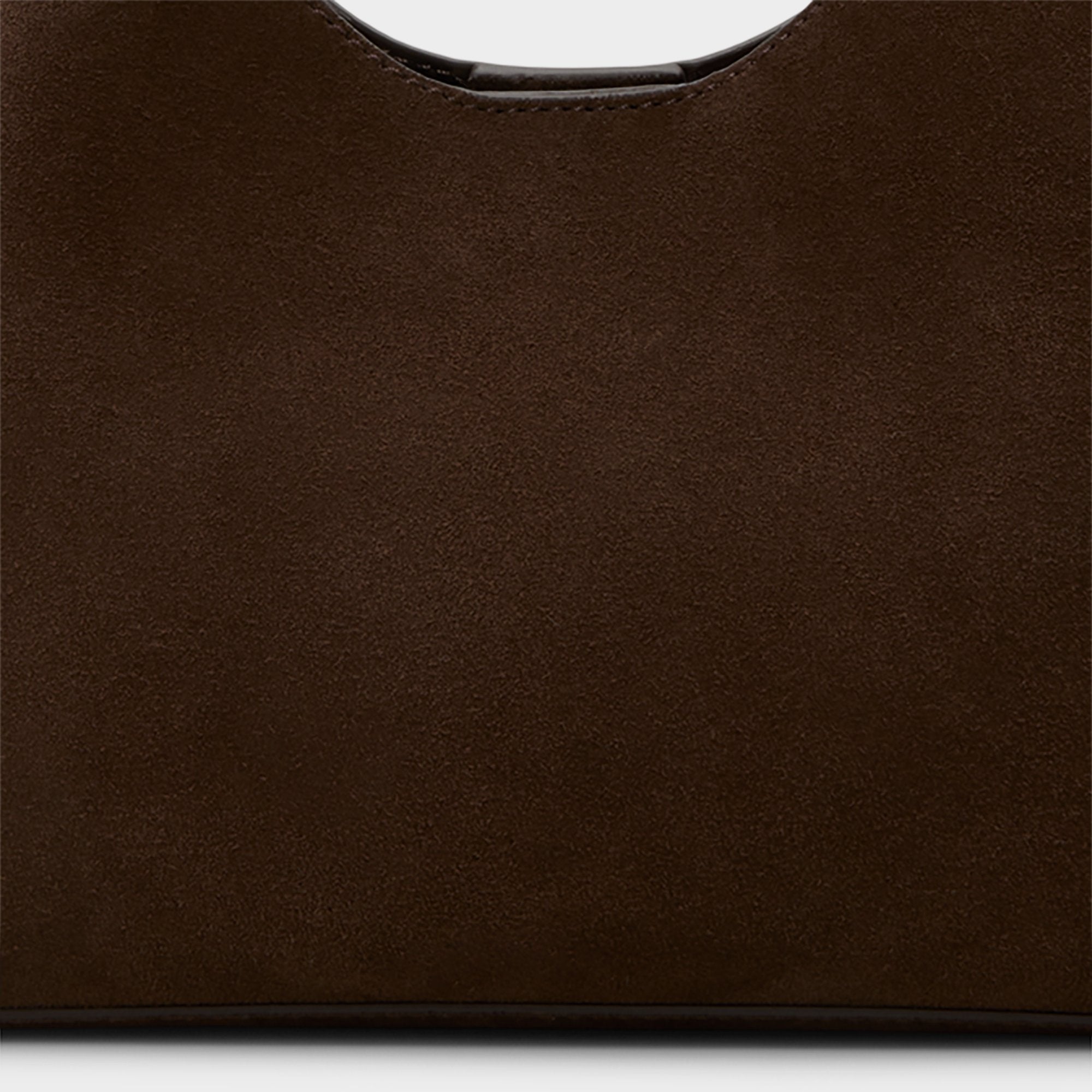 Velvety suede forms a sleek hobo curve, with a single shoulder strap dipping into a deep scoop and gold hardware framing its hidden magnetic closure to keep essentials in check. Tuck it under a blazer for coffee meet-ups or sling it over a knit dress on weekend errands to polish every look.
