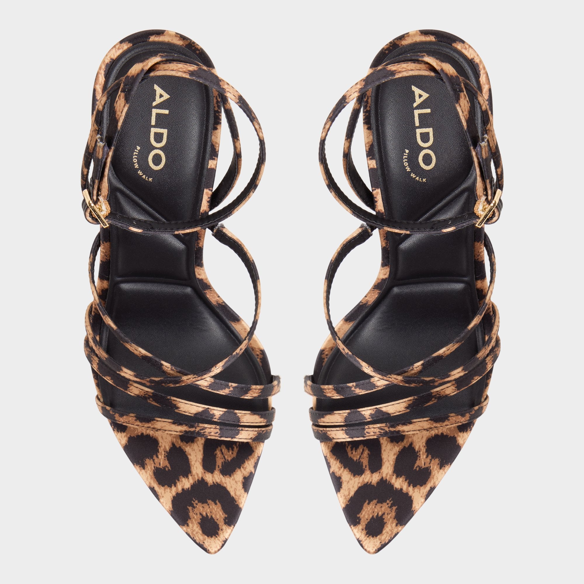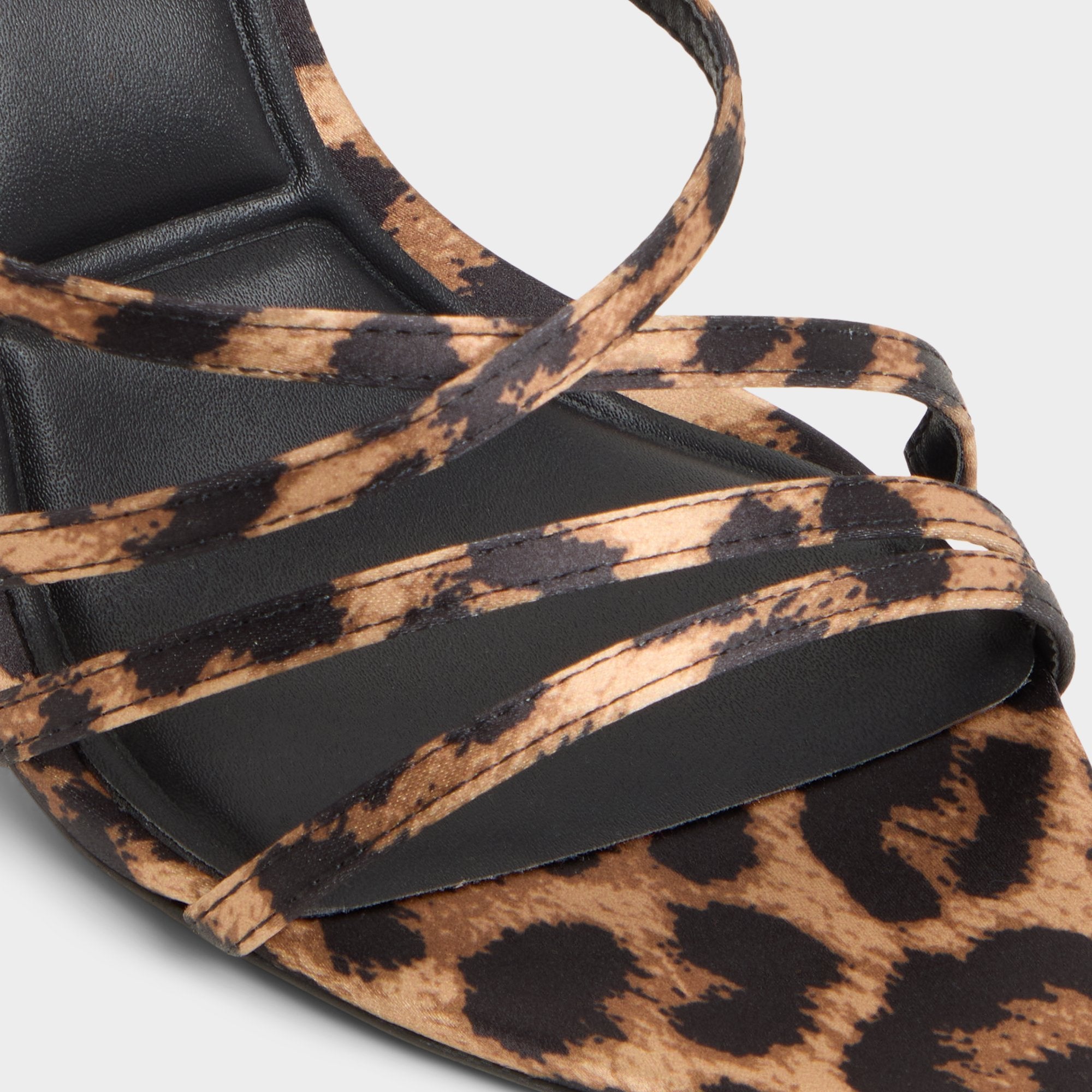 Wild leopard-print straps dance across a square peep toe, balanced by a sharp stiletto and cushioned footbed keeping you steady from photo ops to last song spins. Pair with cropped black denim for drinks or swap in silky slip dresses when weddings mention city views.