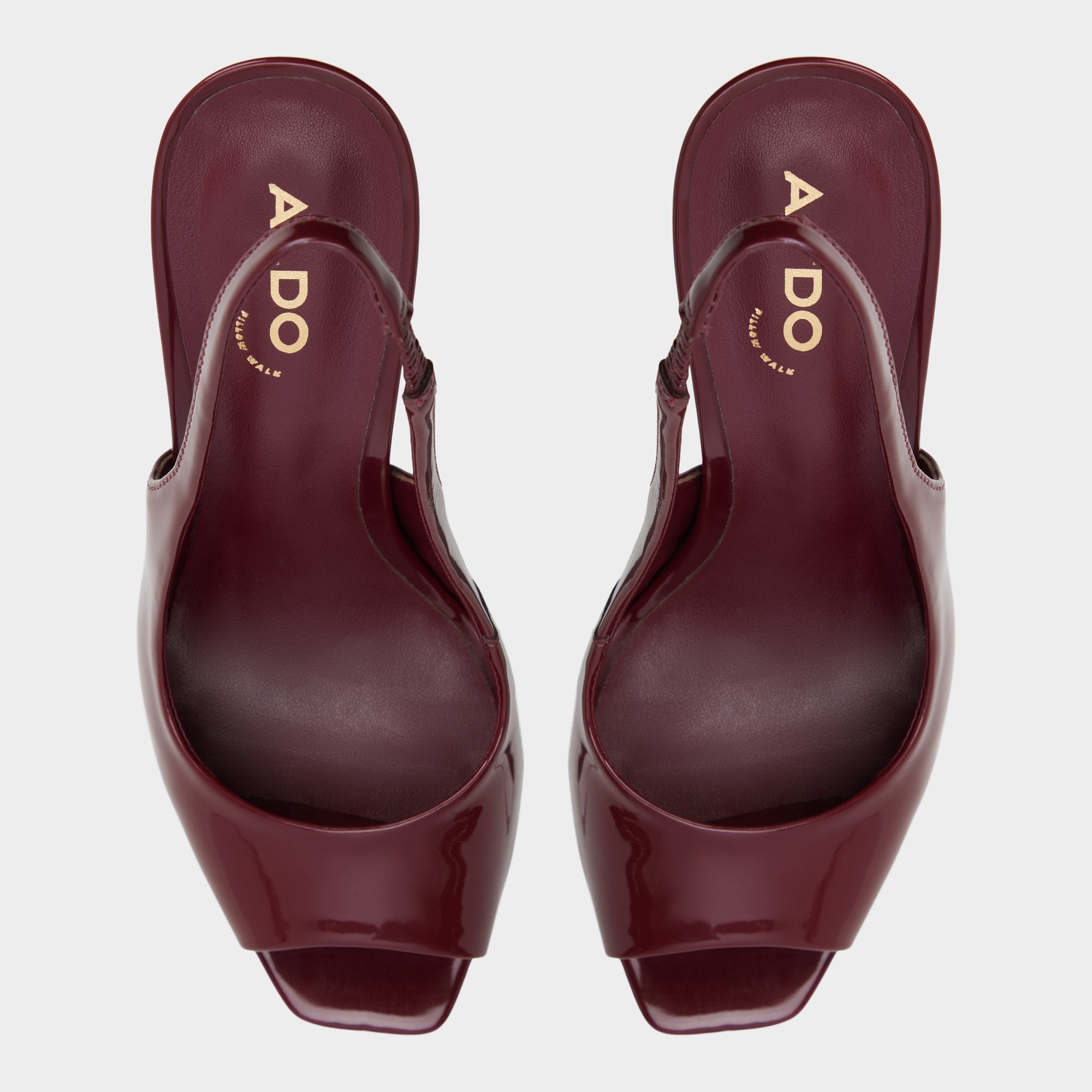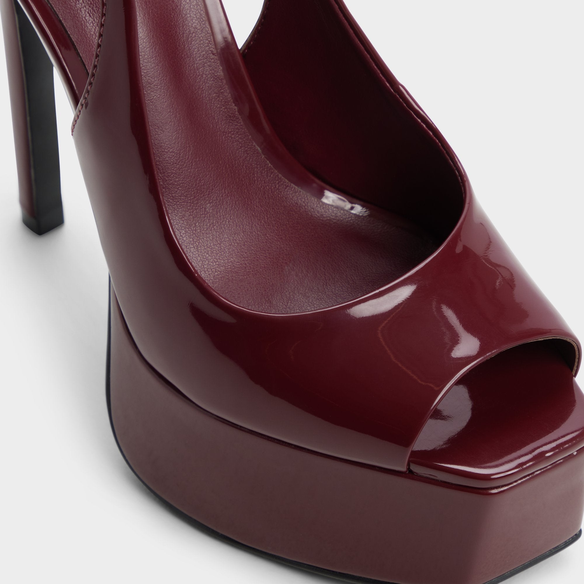 Crimson patent catches the light as sky-high stilettos and bold platforms command the room, while elasticized slingbacks keep peep-toe strides poised from rooftop bars to gallery openings all night long. Pair with sleek tailored pants for a bold office moment, or swap in a satin slip for city-date nights.