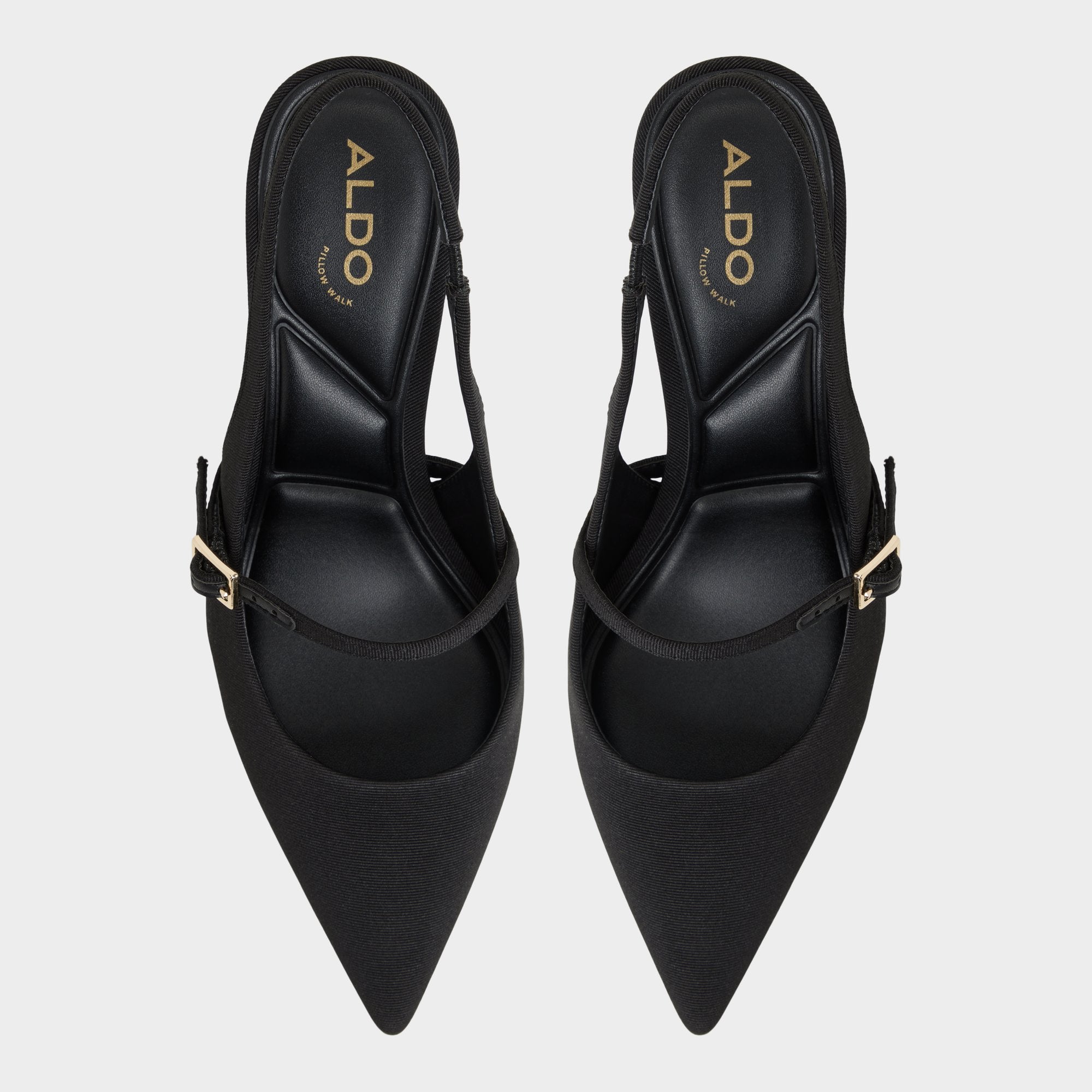 That knife-edge pointed toe sets the pace, while a slim Mary Jane strap flickers gold against matte fabric, and a balanced block heel keeps every pitch, toast, and platform shuffle both steady and chic. Pair with sharp tailoring for boardroom wins, or swap in a satin slip when after-dark jazz bars cue the improv.