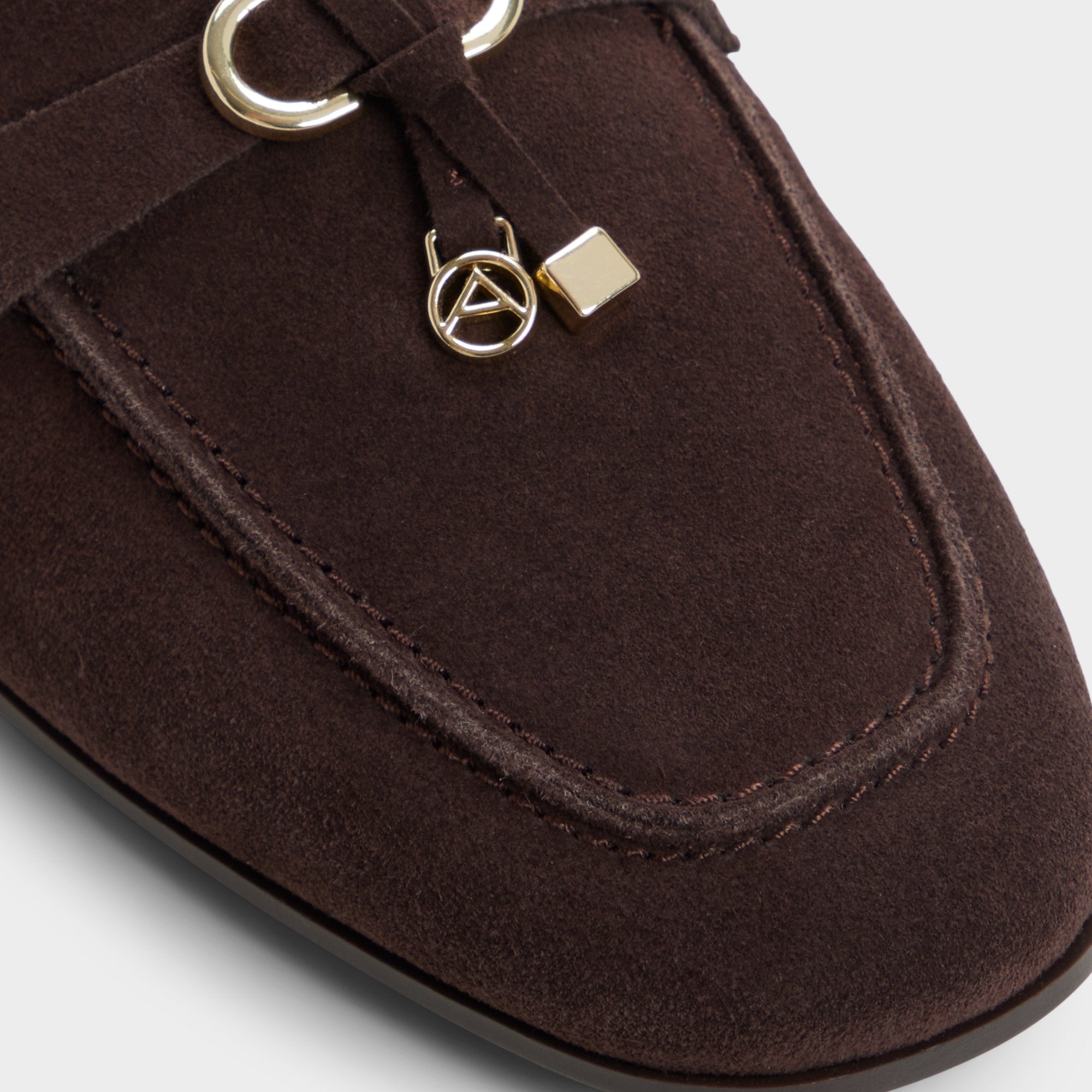 Supple chocolate suedes meet gleaming gold-tone hardware in a sleek, city-ready slide, where discreet cushions cradle every step and a refined silhouette makes an after-work coffee run feel like a mini celebration. Pair with cropped denim for casual errands, or slip under a satin dress as night-out calls.