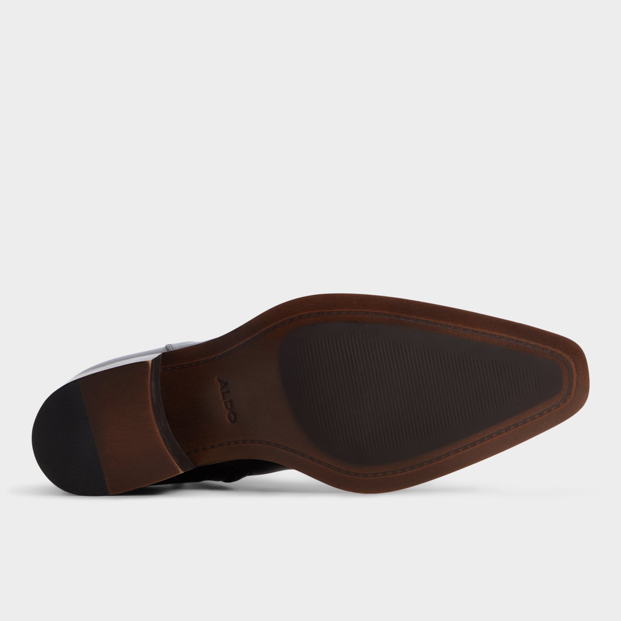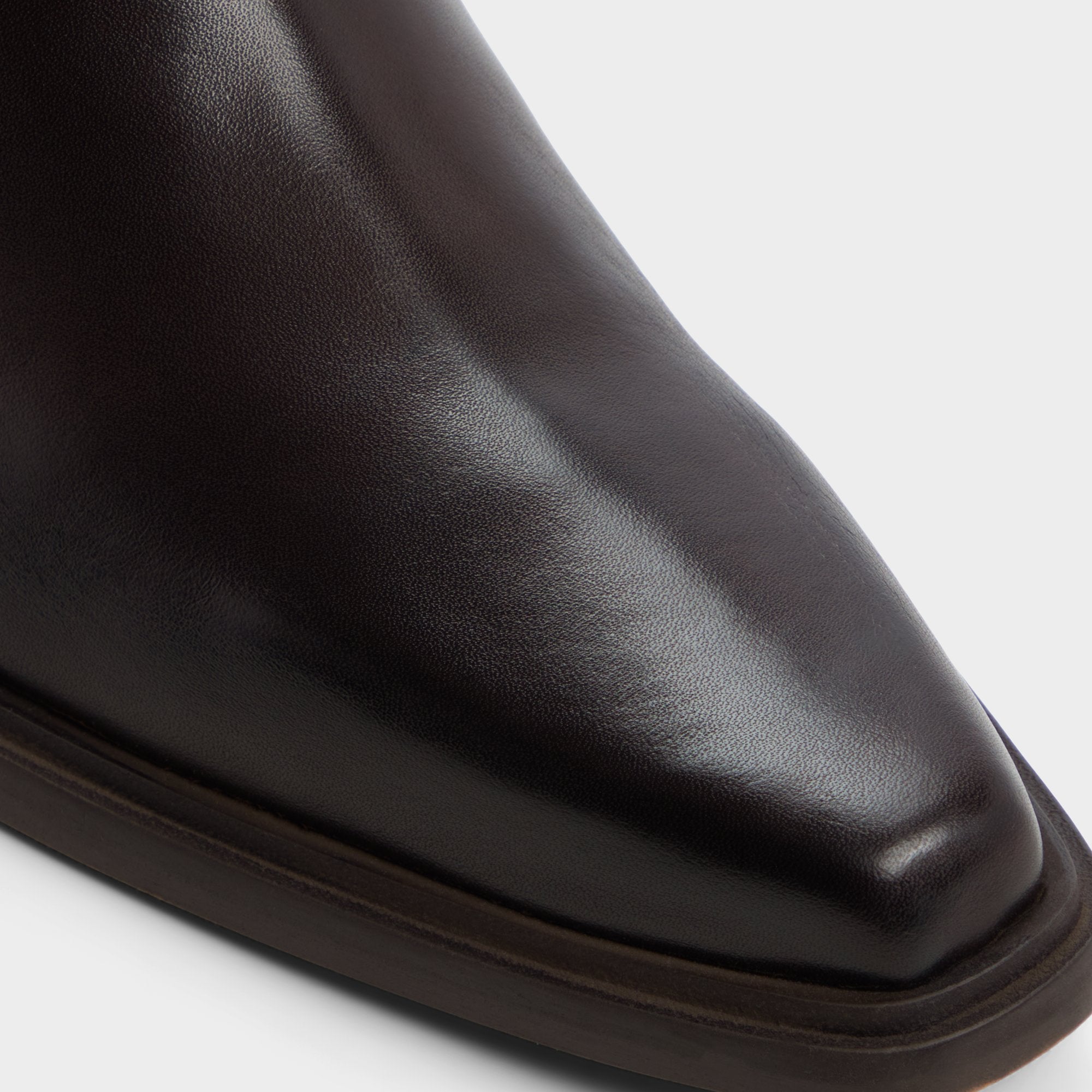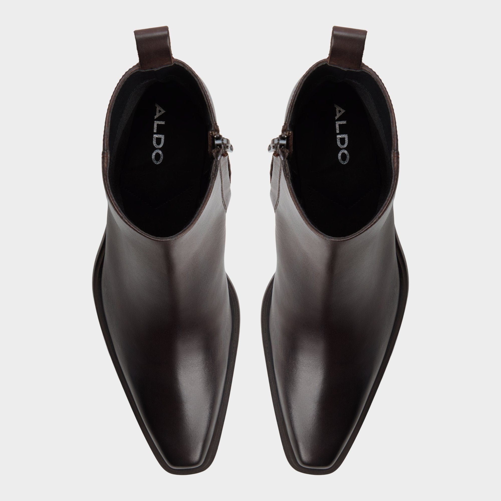 Espresso-toned leather shapes a sharp ankle boot, with a clean silhouette and a standout block heel that moves from client meetings to after-hours with poise, blending polish with that easy, wear-anywhere feel. Pair it with charcoal tailoring for client catchups at the office, or roll dark denim for after-hours gigs.