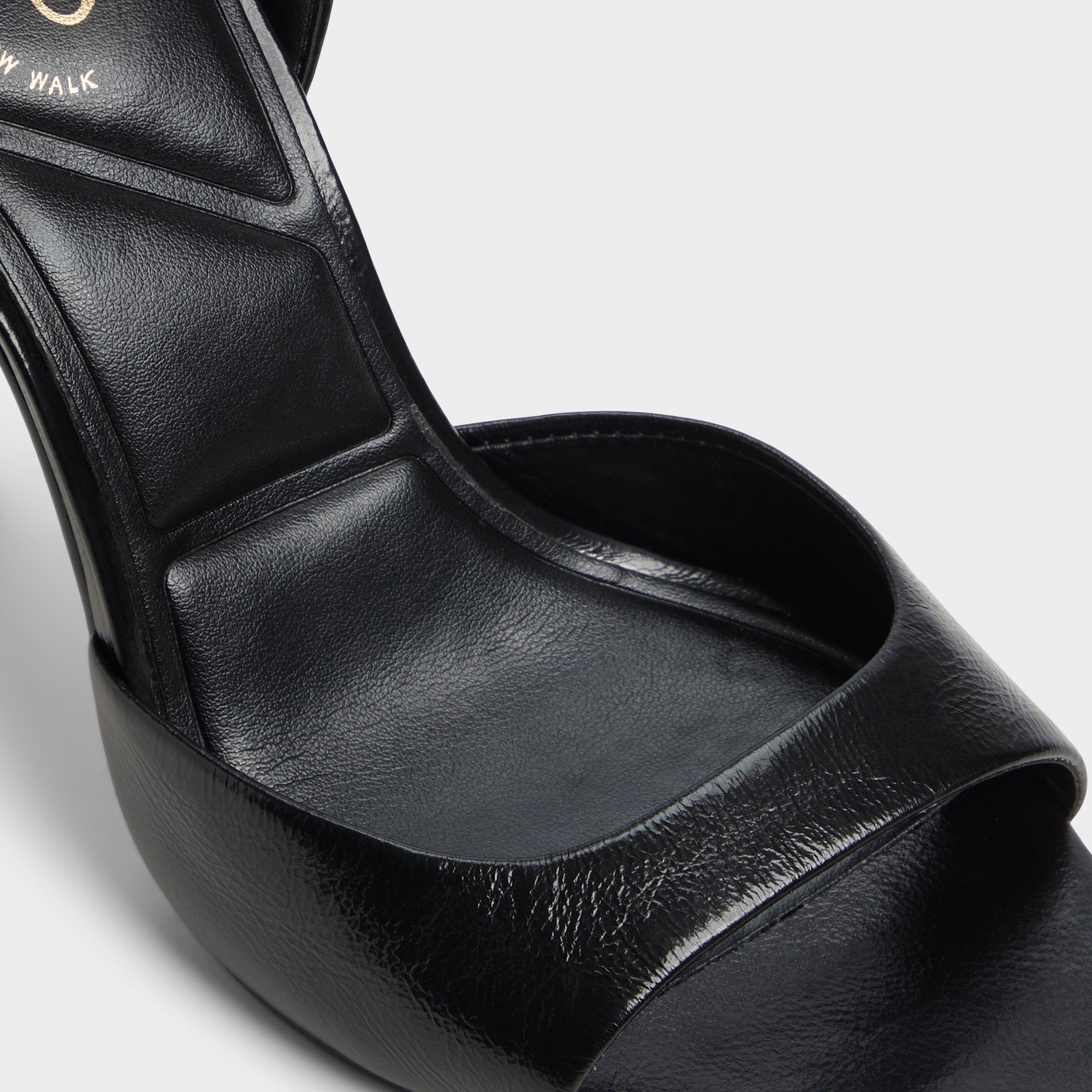 Midnight-smooth leather circles the foot, delicate straps trace a clean line, and a sculpted stiletto heel lifts posture for city-light confidence, while the refined silhouette promises ease from desk to dusk. Pair with jumpsuits for presentations, or swap in a sleek slip dress for rooftop dinners.