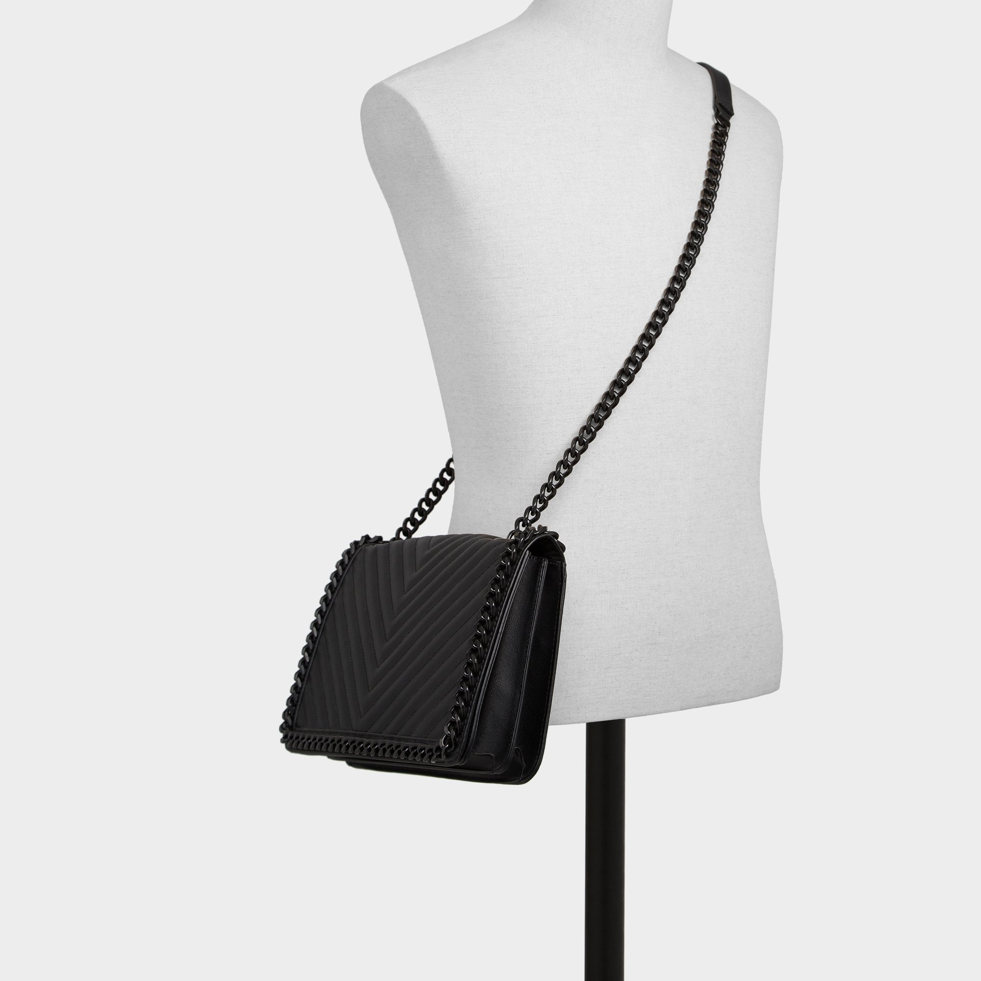 A quilted bag is totally linked-in courtesy of chained frame and a crossbody strap. Big enough for work, yet petite enough for play, it surprisingly has wear-with-anything appeal.