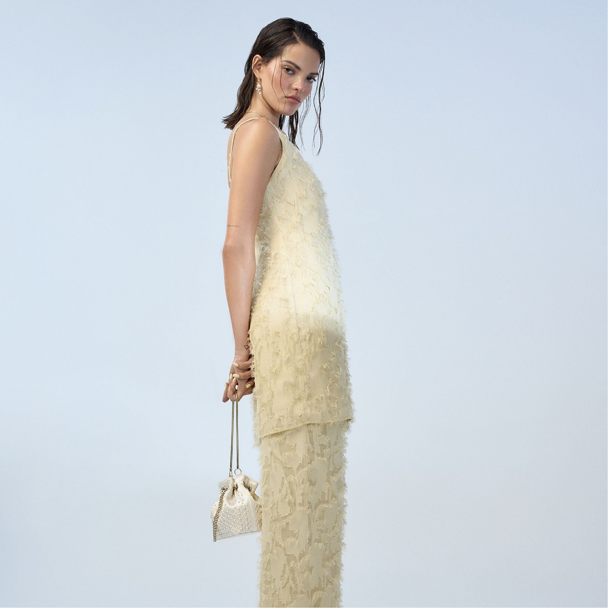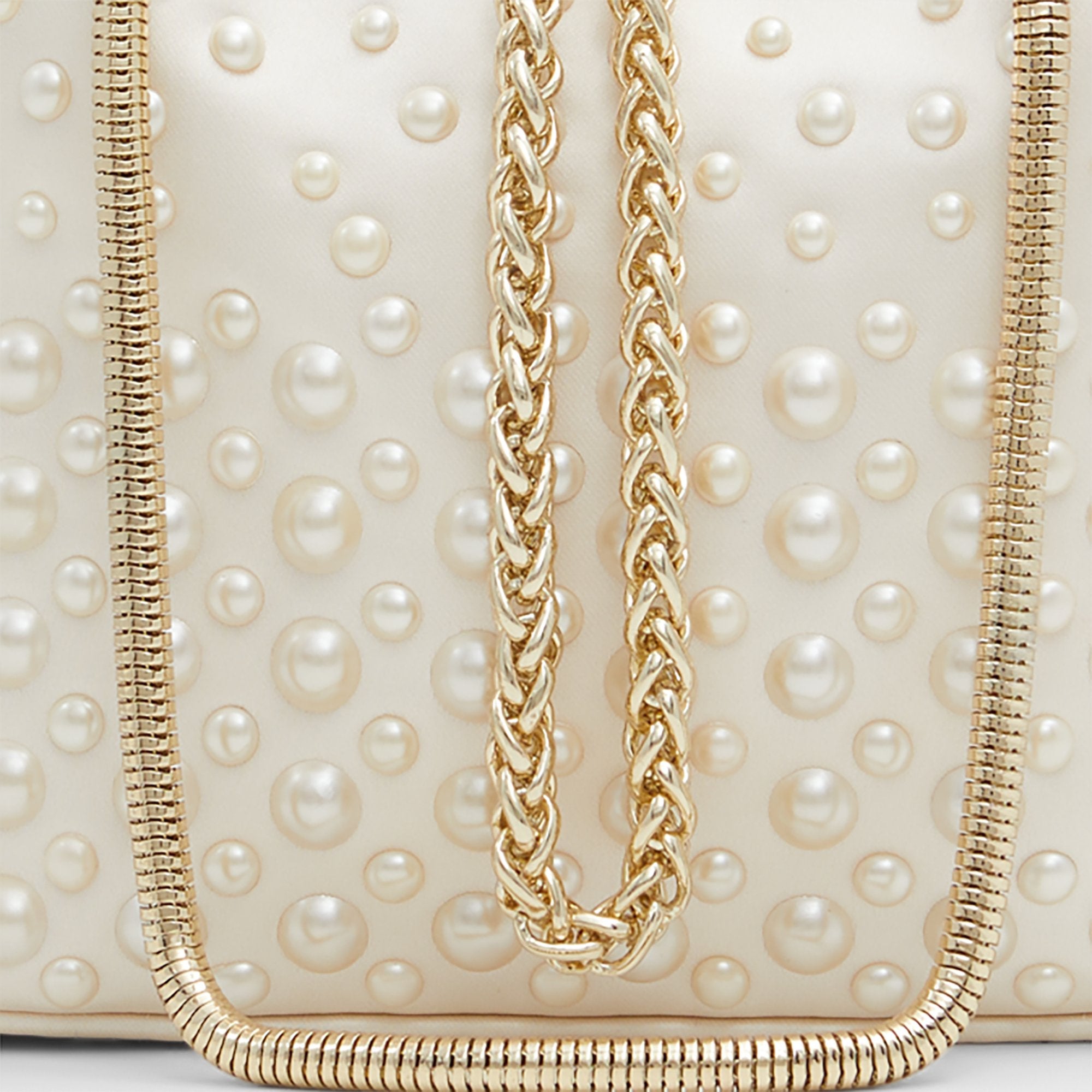 This dainty bucket bag with all-over pearl embellishments is simply too cute to resist! Ideal for weddings and special occasions alike, we think this bag will be the perfect complement to your elegant looks.