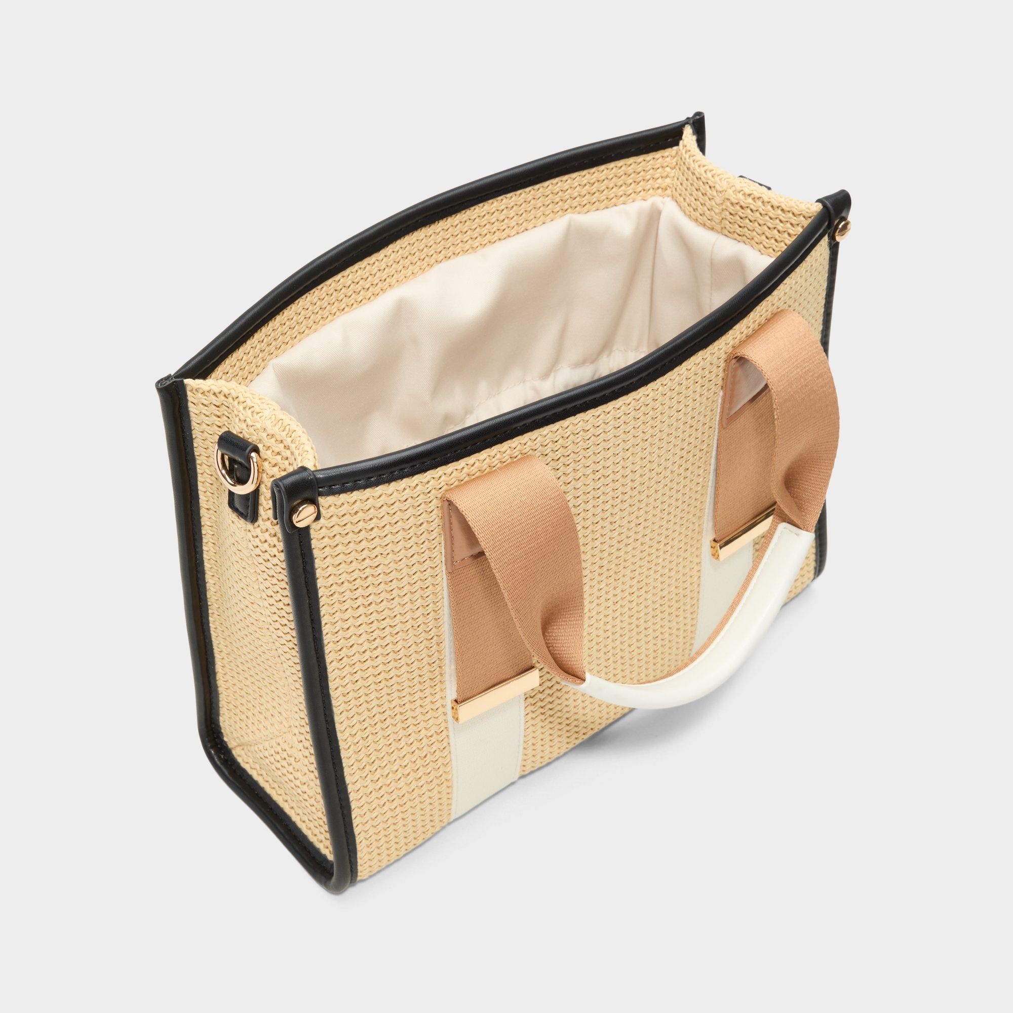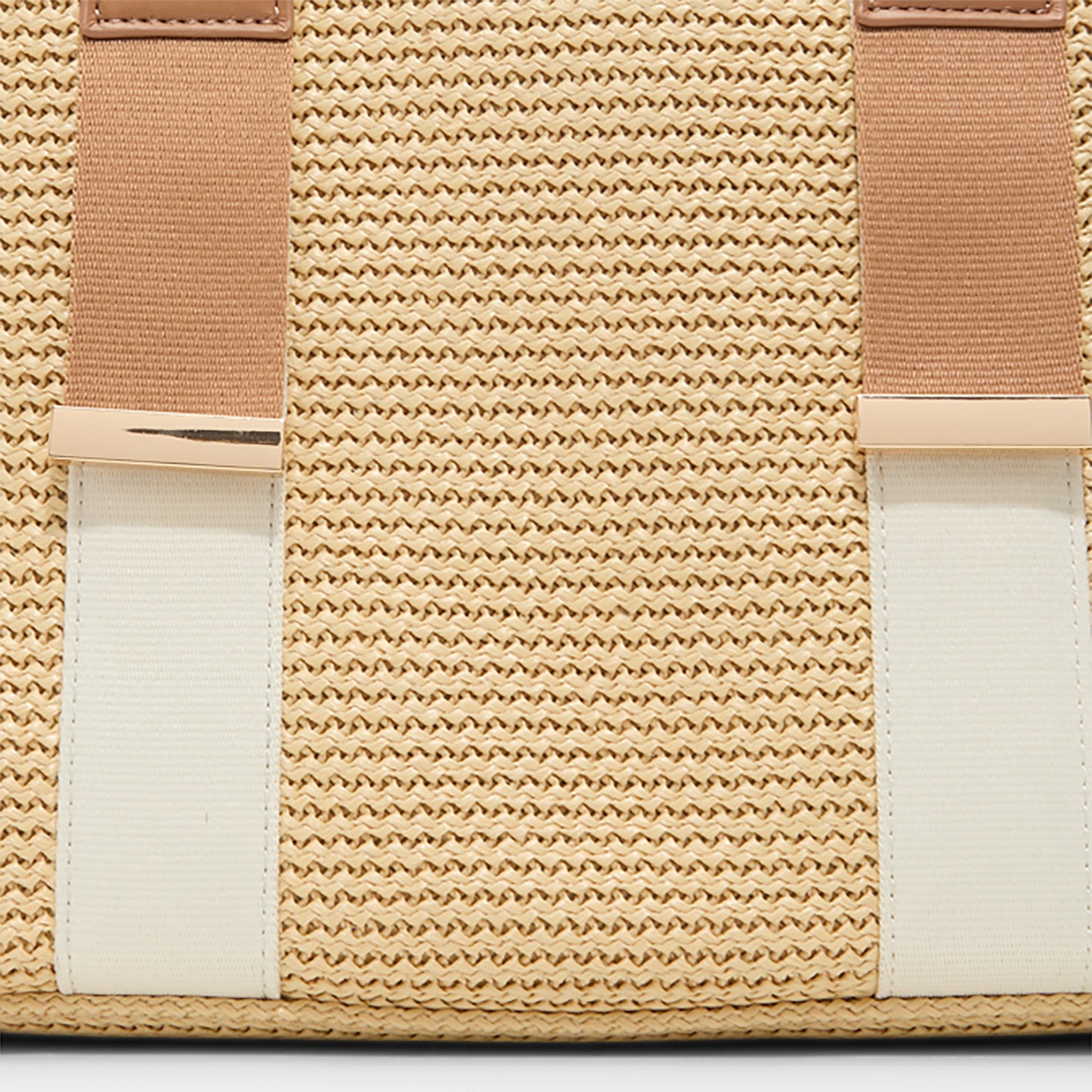 Featuring chic color-blocking handles and a removable, adjustable crossbody strap, this textured satchel offers ultimate versatility for any journey, whether you’re lounging by the beach or exploring the city.