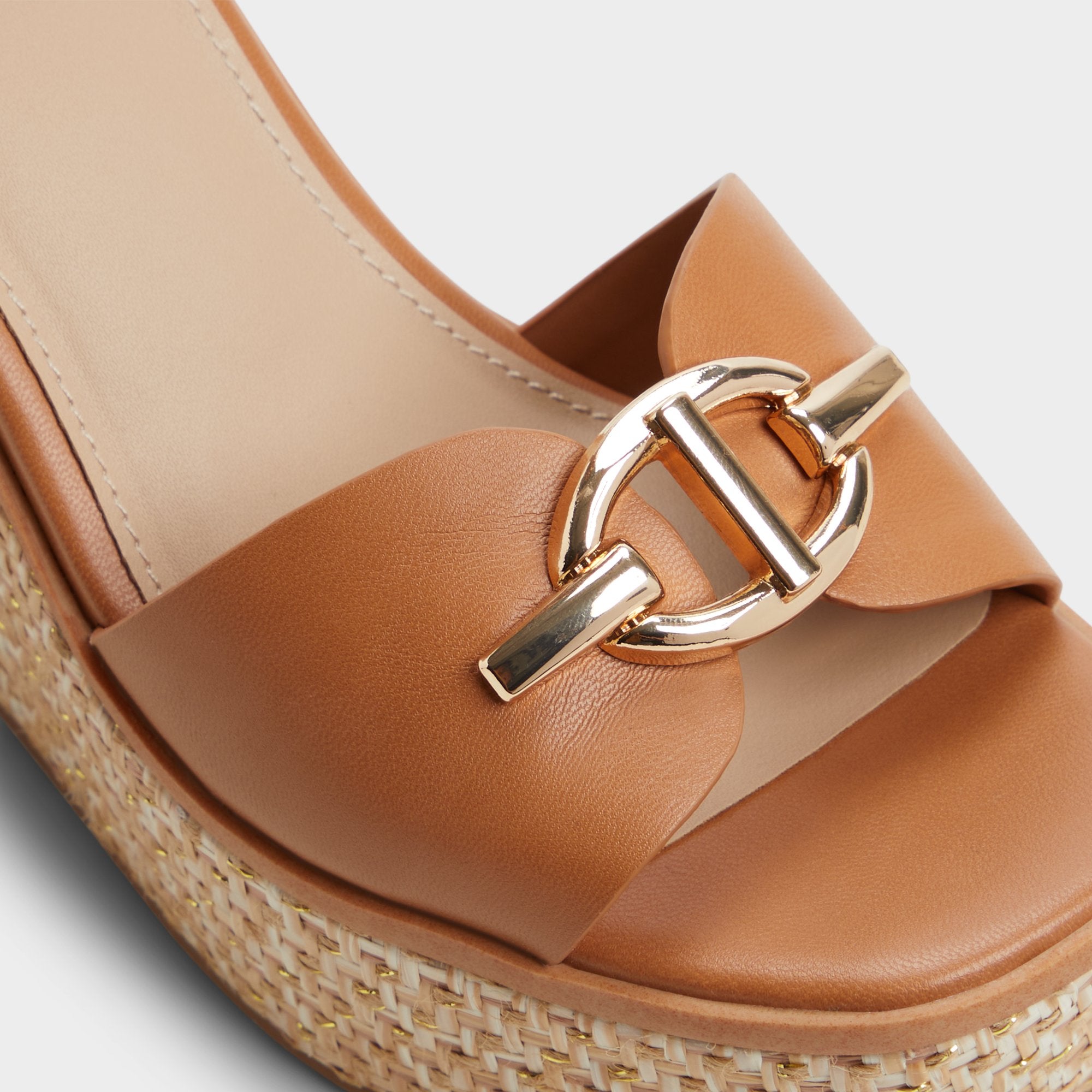 Sun-warmed leather cradles your foot while a sculpted basket-weave wedge lifts you-lightweight and steady, adorned with a gleaming buckle like treasure found in your weekend tote. Pair with cotton shorts for farmers-market laps, or swap in a printed wrap dress when brunches blur into gallery strolls.